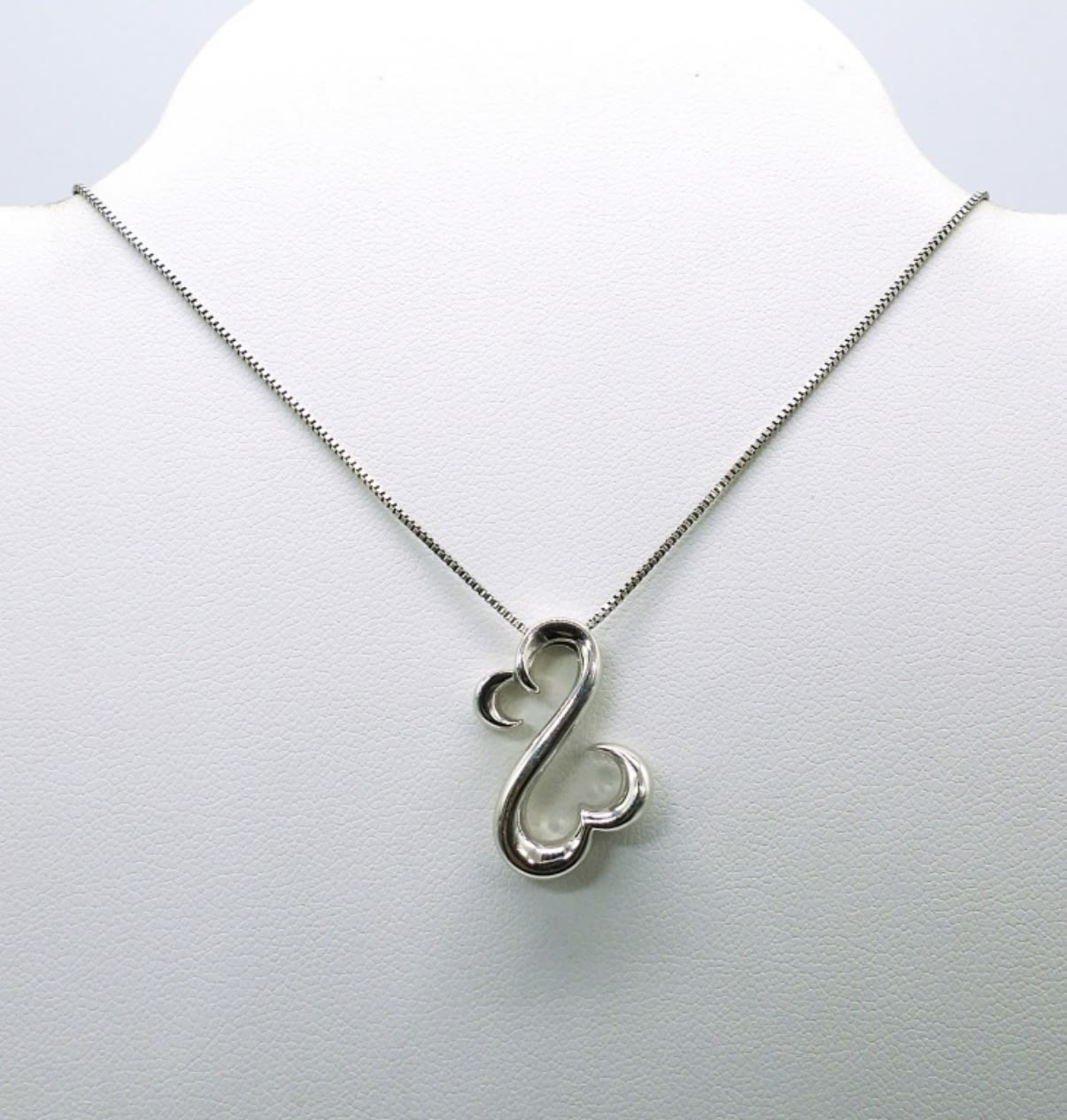17 inch Open Heart Necklace in Sterling. 3 Pair of Gold Tone & Silver Tone Sterling Hoop Earrings. Two Sterling Silver 8 inch Chain Bracelets. 18.1DWT