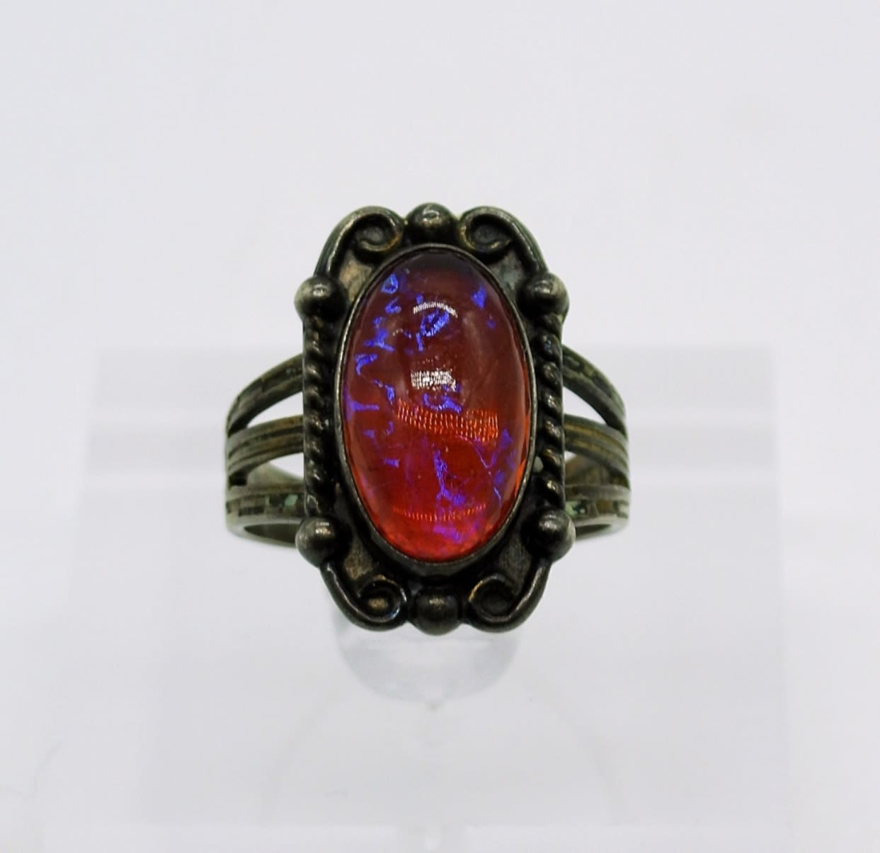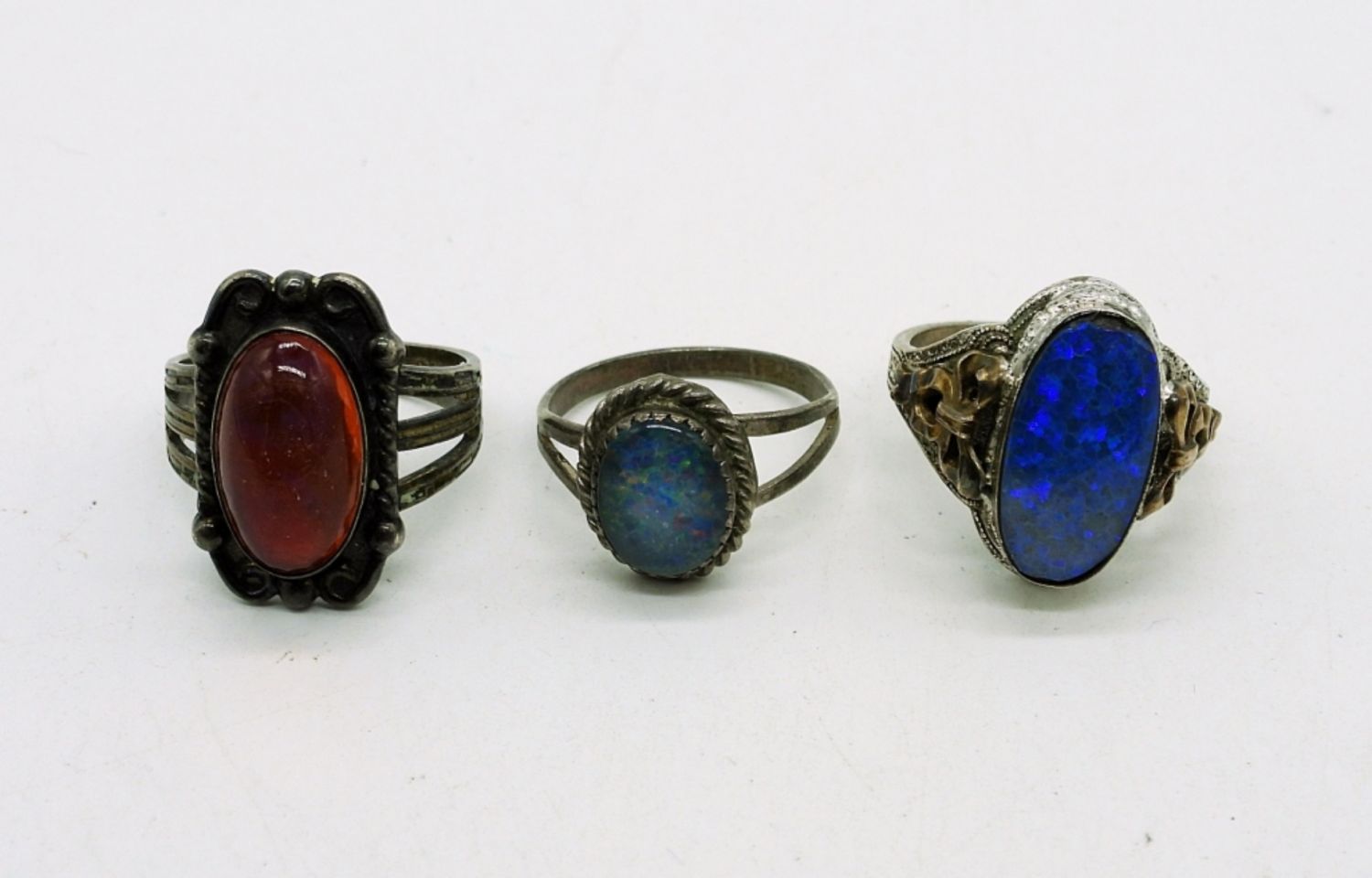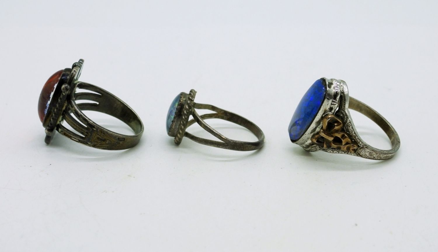 Three Sterling Art Deco Vintage Rings with Colorful Centers. Sizes 5.5-6.5 9DWT