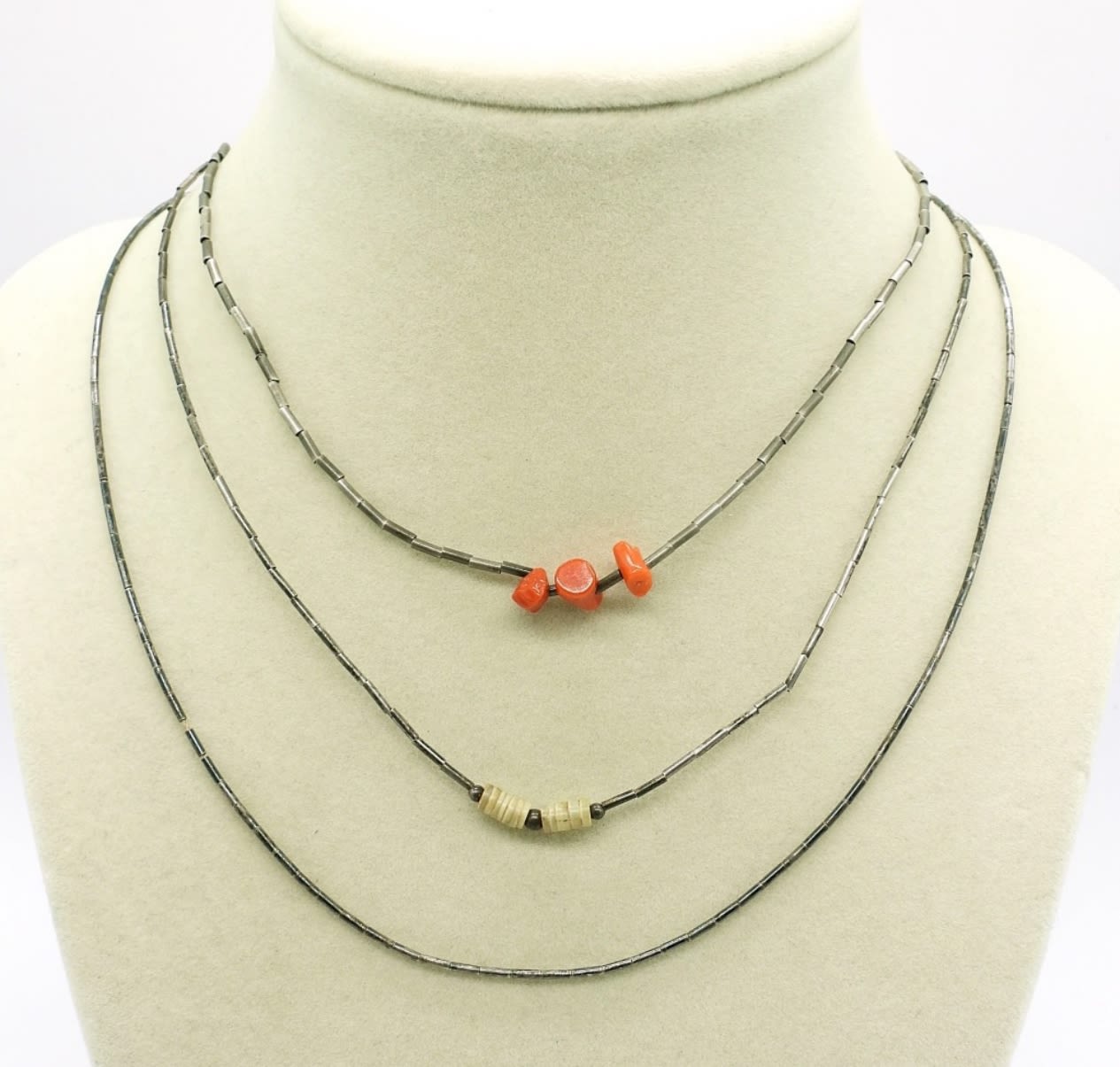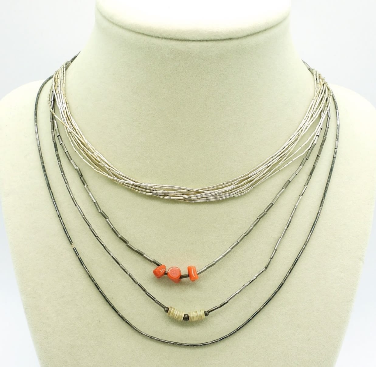 Four Liquid Silver Necklaces 14-16 inch long. Two are beaded. 12.5DWT