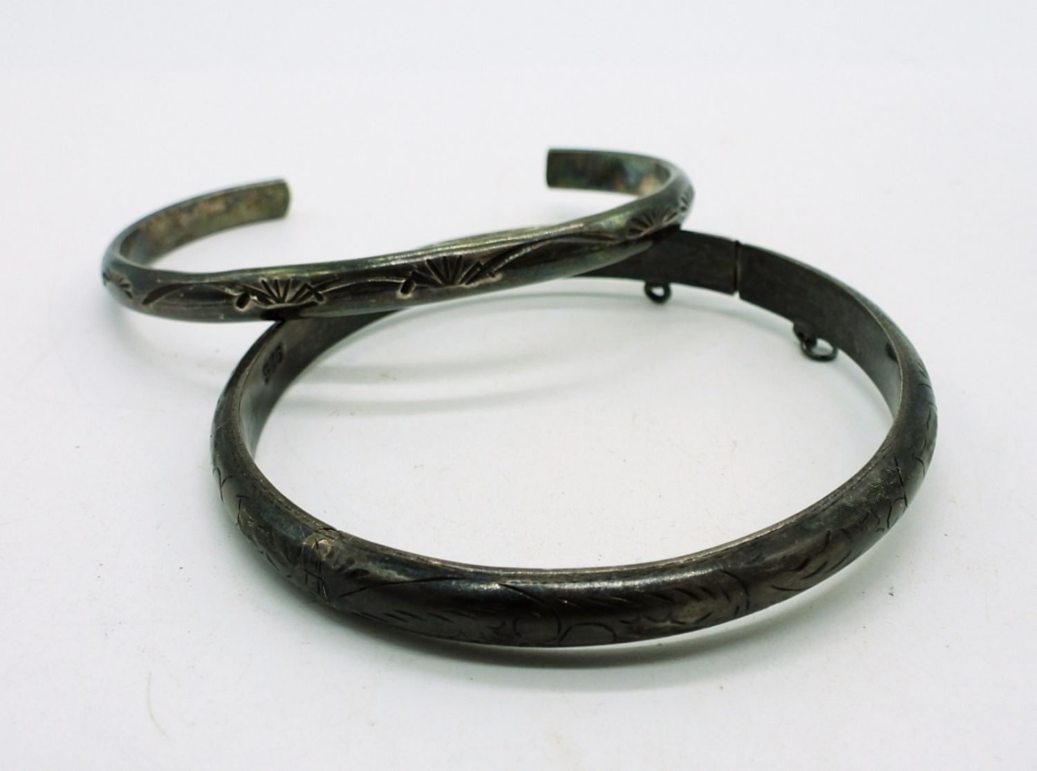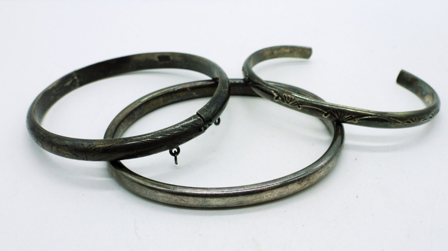 Two Sterling Bangle Bracelets and One Sterling Cuff Bracelet. 22.2DWT