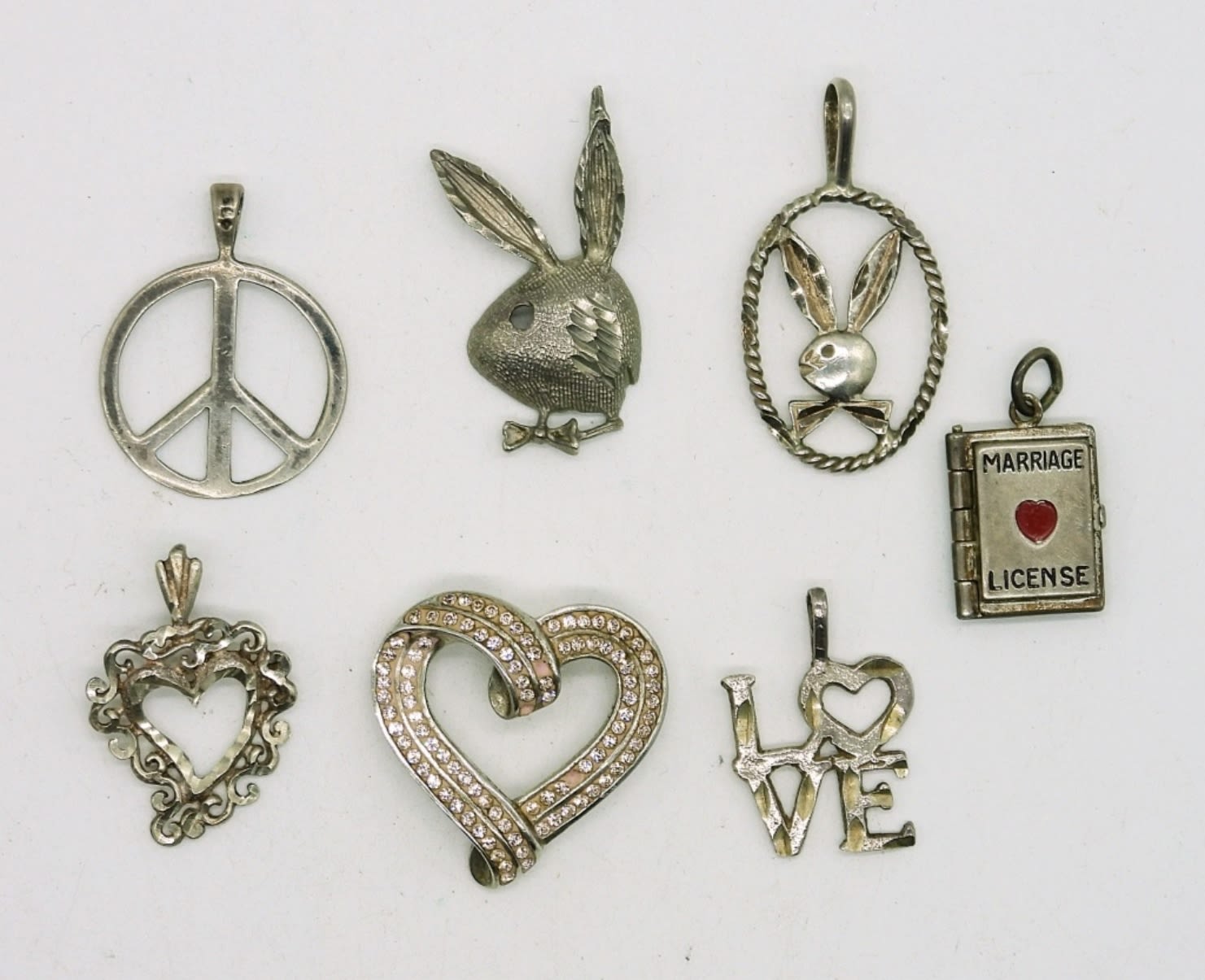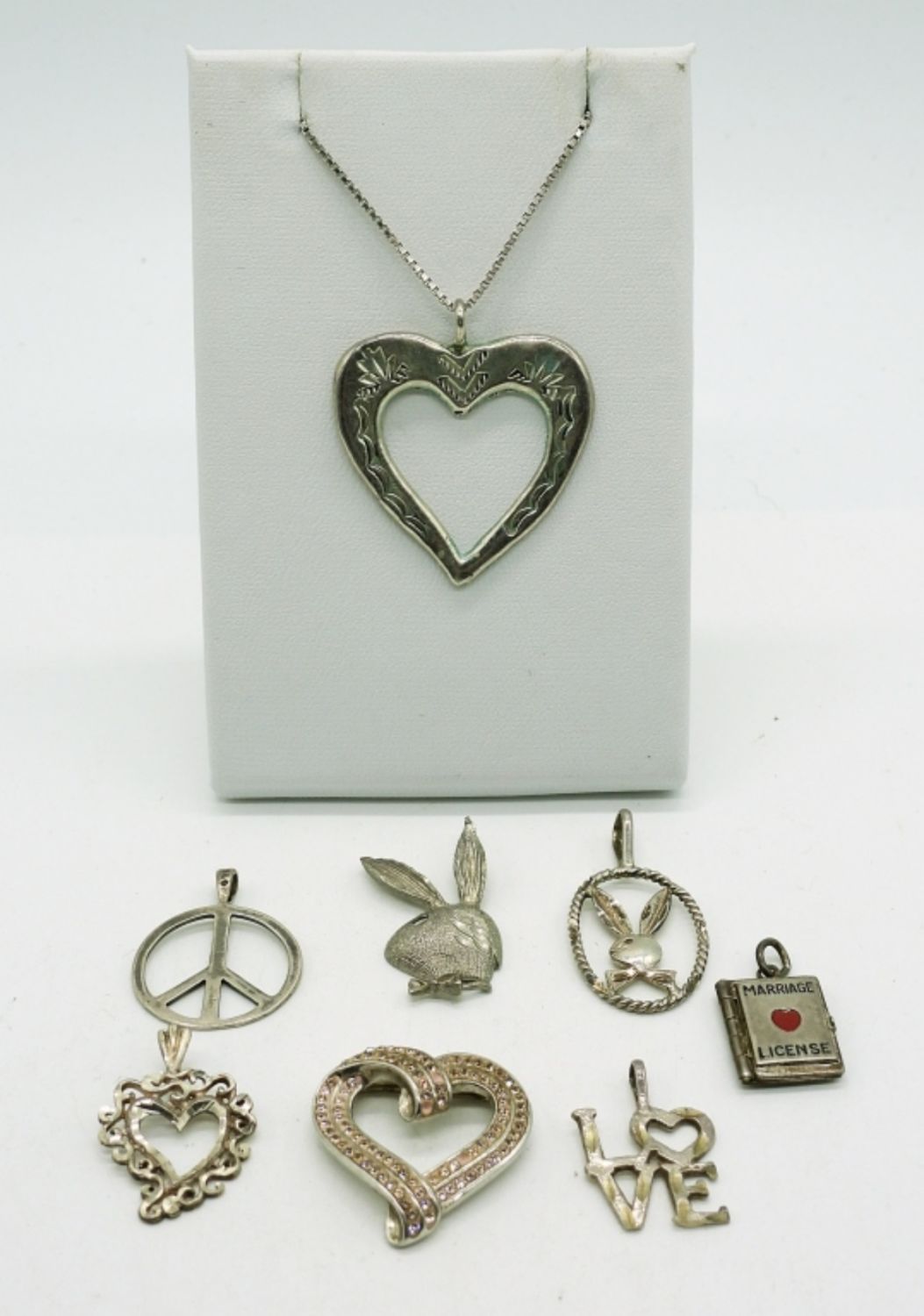 All Sterling Silver. 16 inch Chain with 8 Love Themed Pendants. 12DWT