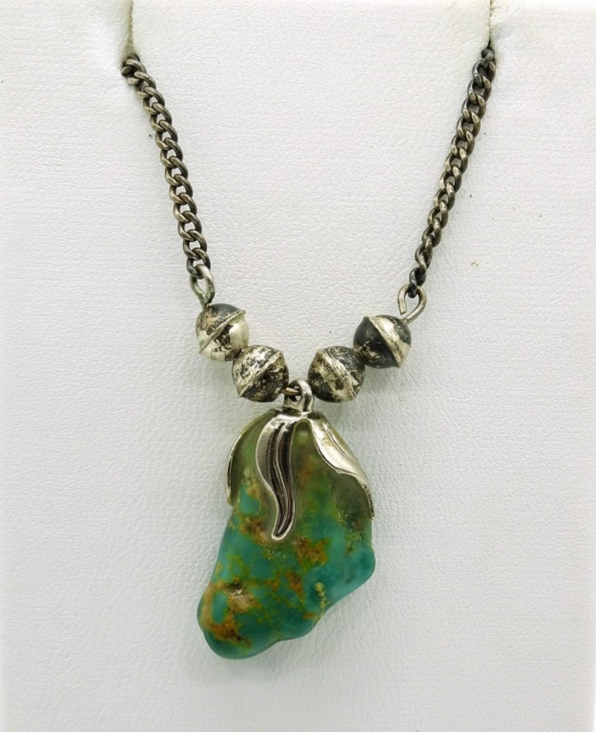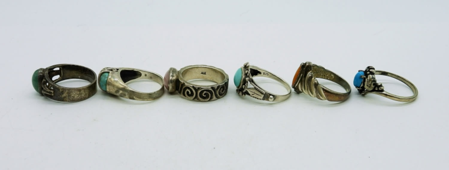 24 inch Sterling Turquoise Necklace. Six Sterling Rings with Turquoise Colored Gemstones and Other Gemstones. 26.5DWT