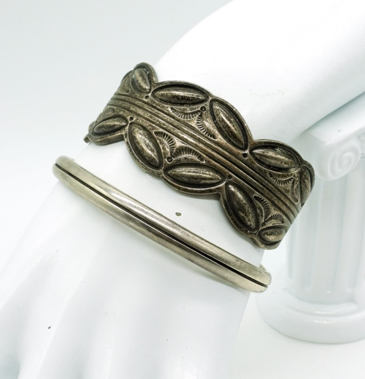 Two Beautiful Vintage Sterling Silver Cuff Bracelets. These are thick, heavy & sturdy! 53 DWT
