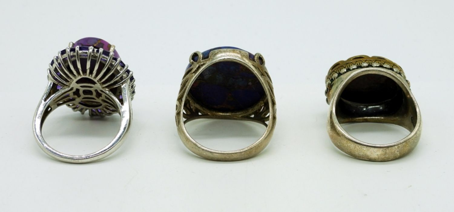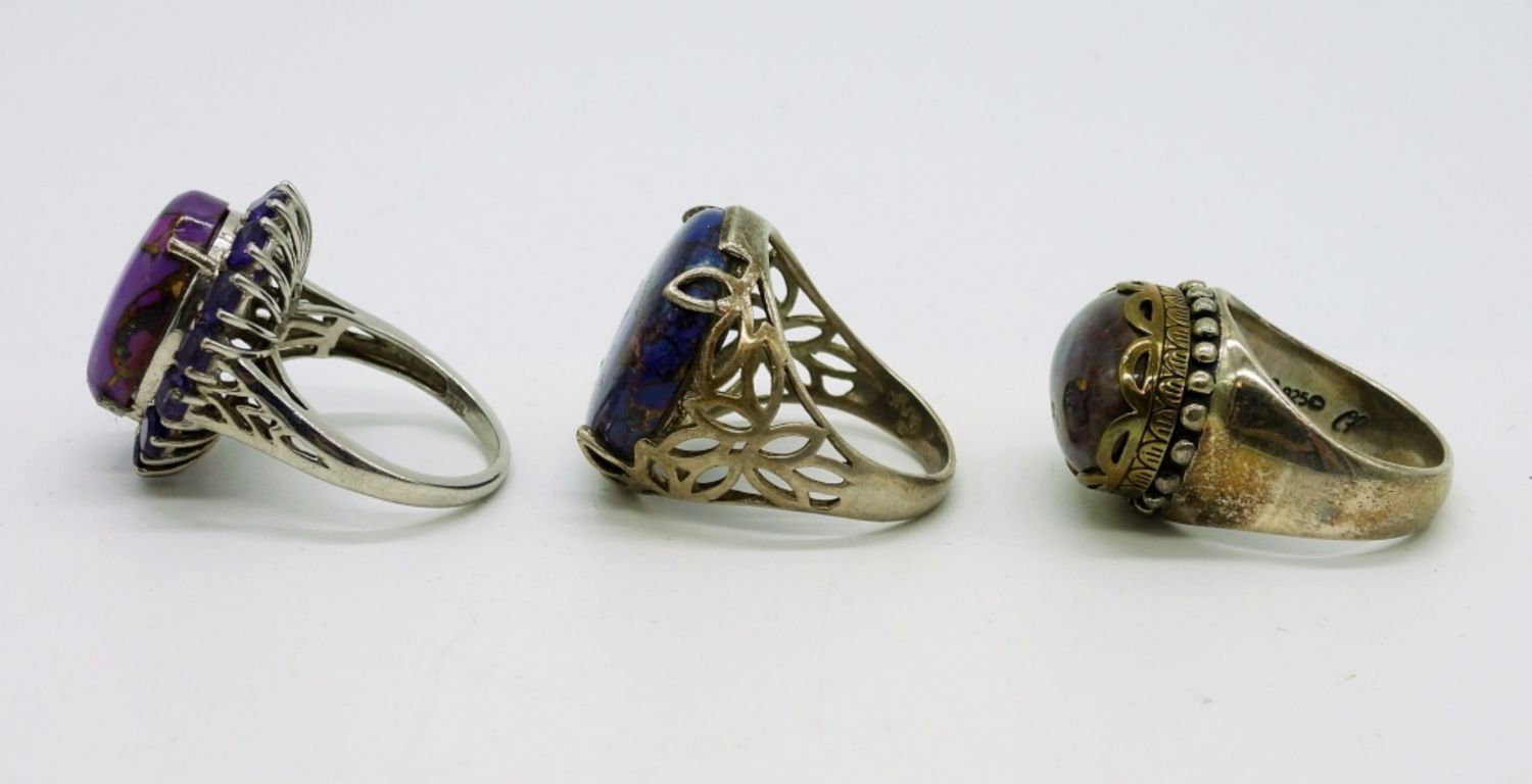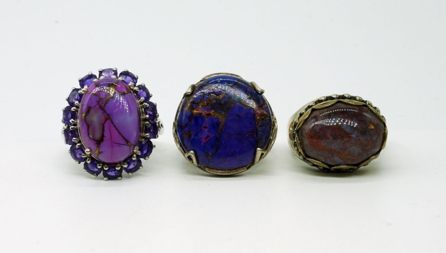 Sterling Silver Rings with Agate & Purple Turquoise Gemstones. Very Large Gemstones in Great Condition! 19.6 DWT
