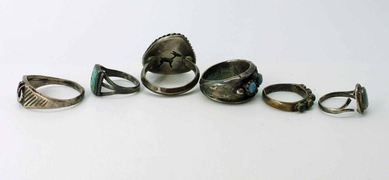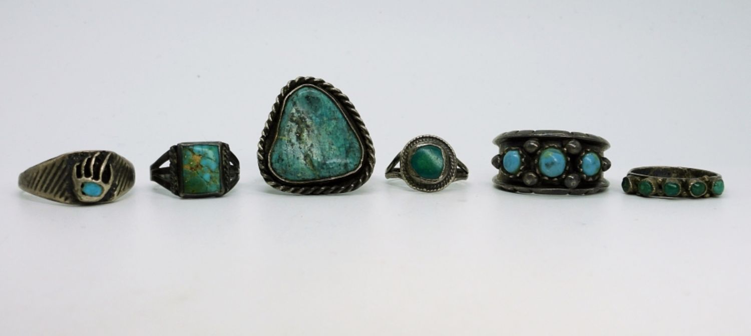 Sterling Unisex Turquoise Rings, Sizes 3-10. NOTE: The circular turquoise ring needs band repair. 18.6 DWT