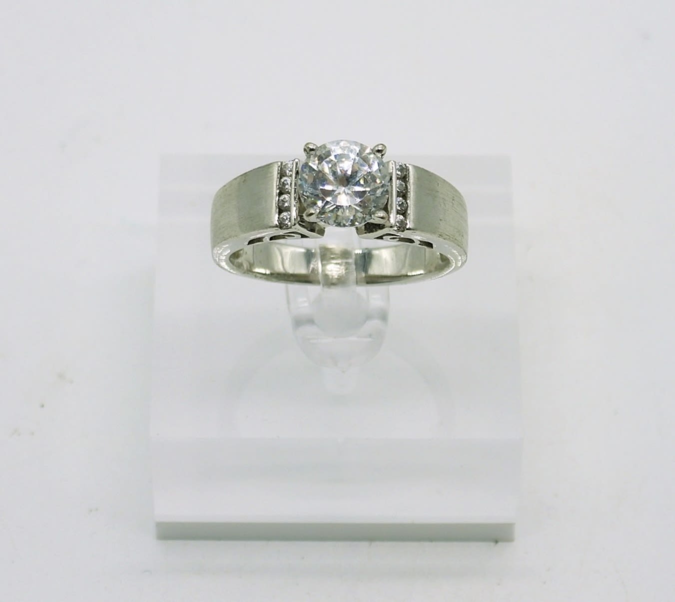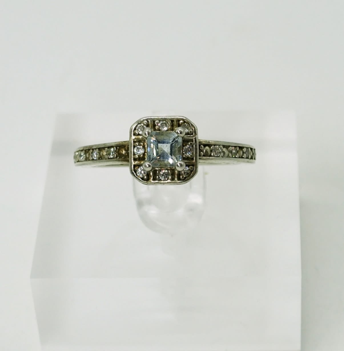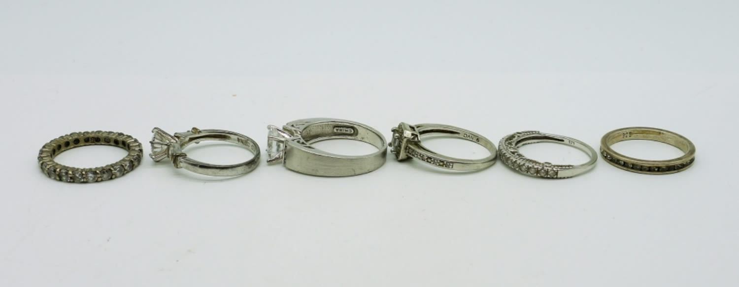 Three Sterling Solitaire Rings with Diamond Colored Gemstones and Three Sterling Bands with Diamond Colored Gemstones. Sizes 8-10. 14 DWT