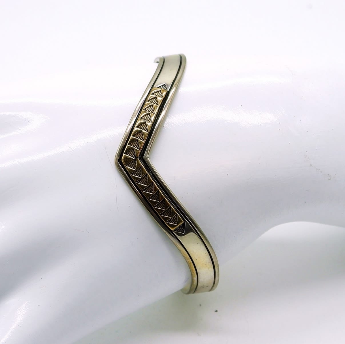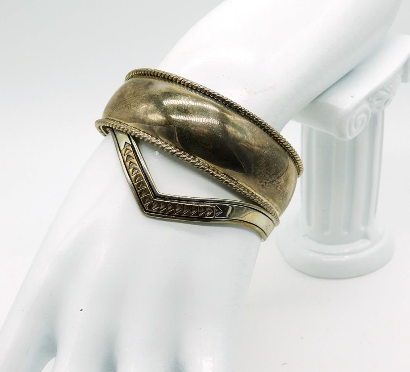 Vintage Sterling Wide Cuff Bracelet and a Gold and Silver toned Chevron Cuff Bracelet. 24.1 DWT
