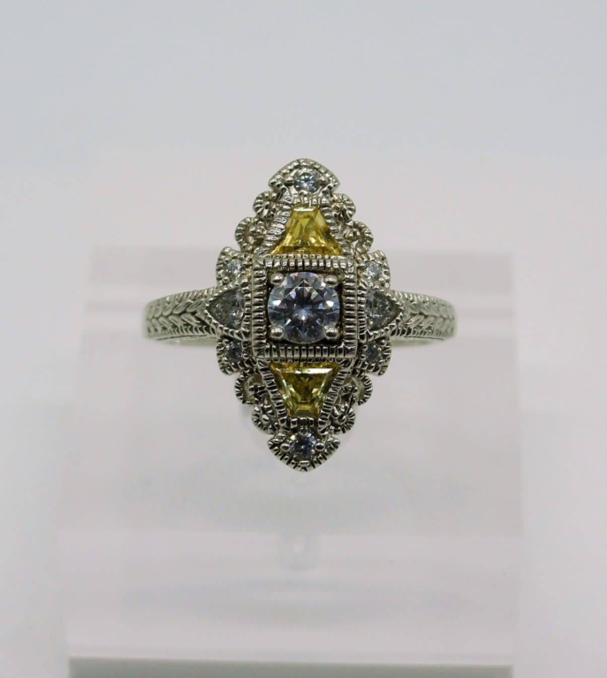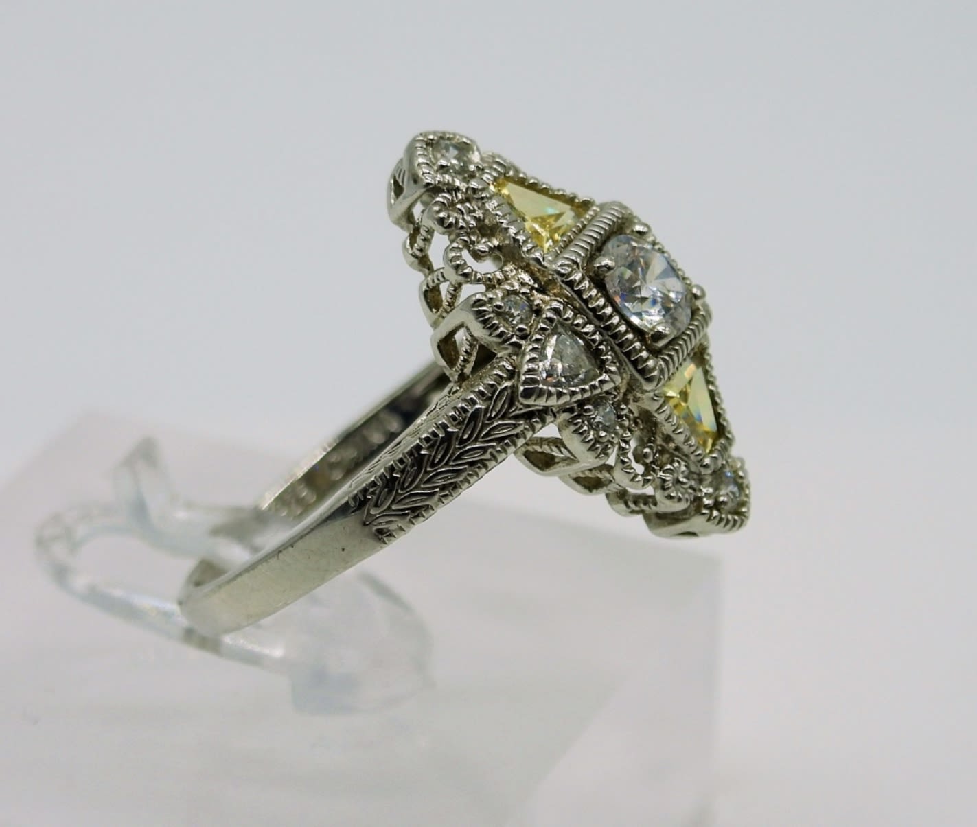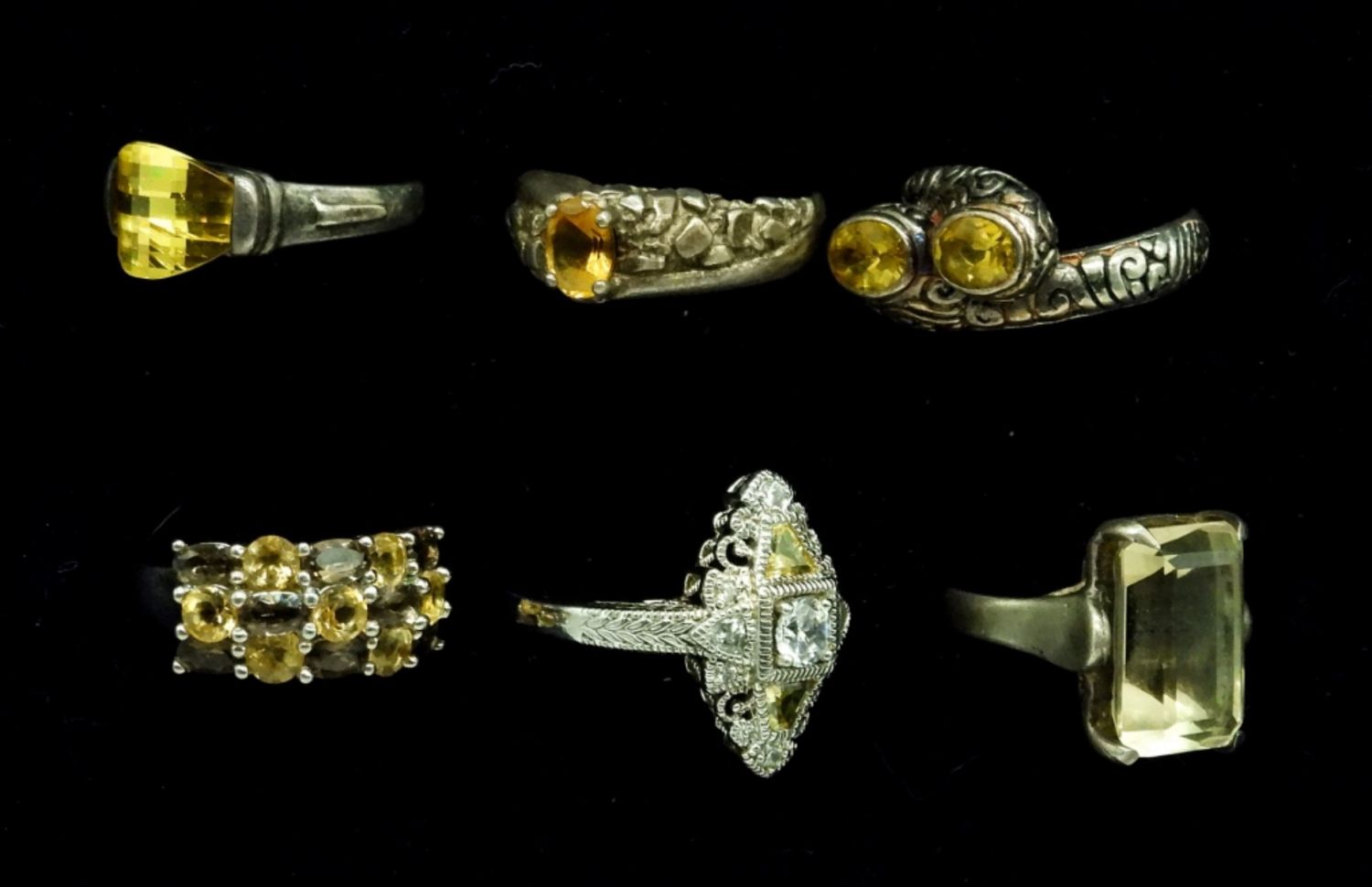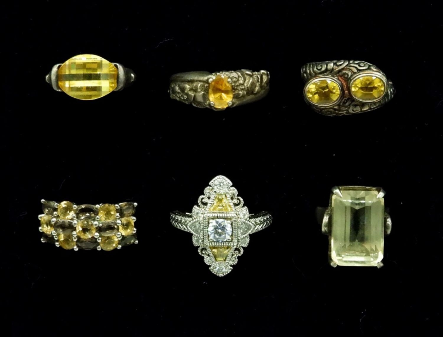 Six Vintage Sterling Silver Rings, all with yellow toned gemstones. Sizes 5-10. 25 DWT