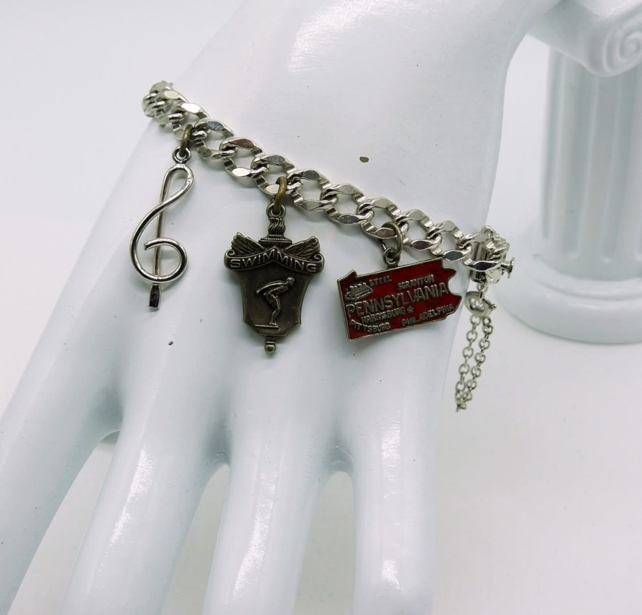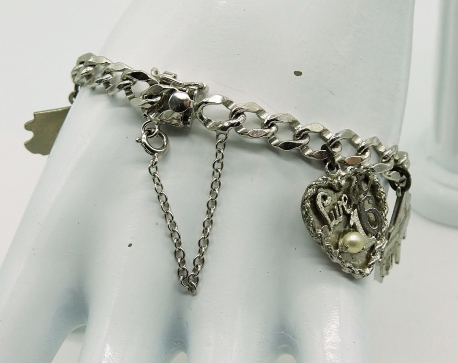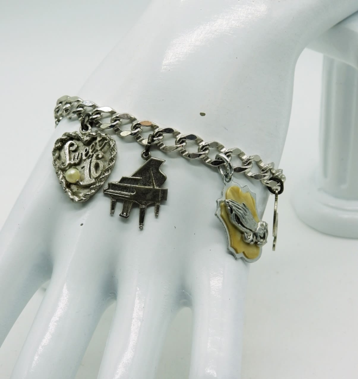 Sterling Charm Bracelet with 7 Sterling Charms. Circa 1969 15.6 DWT