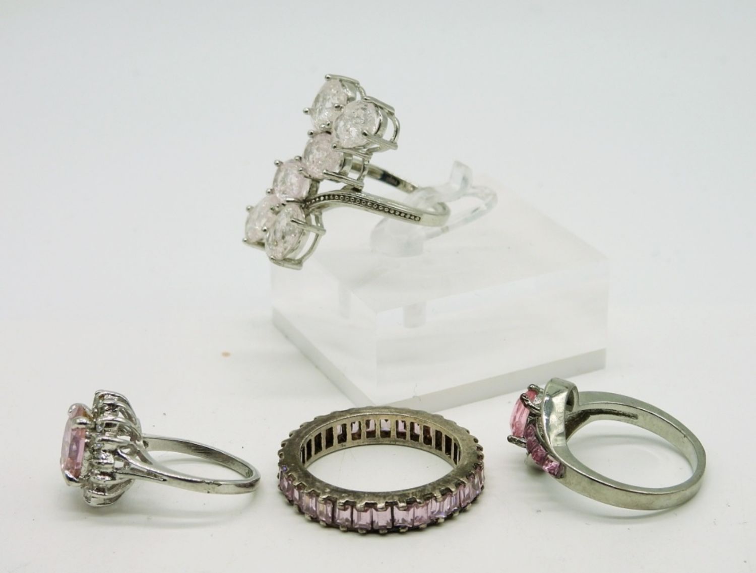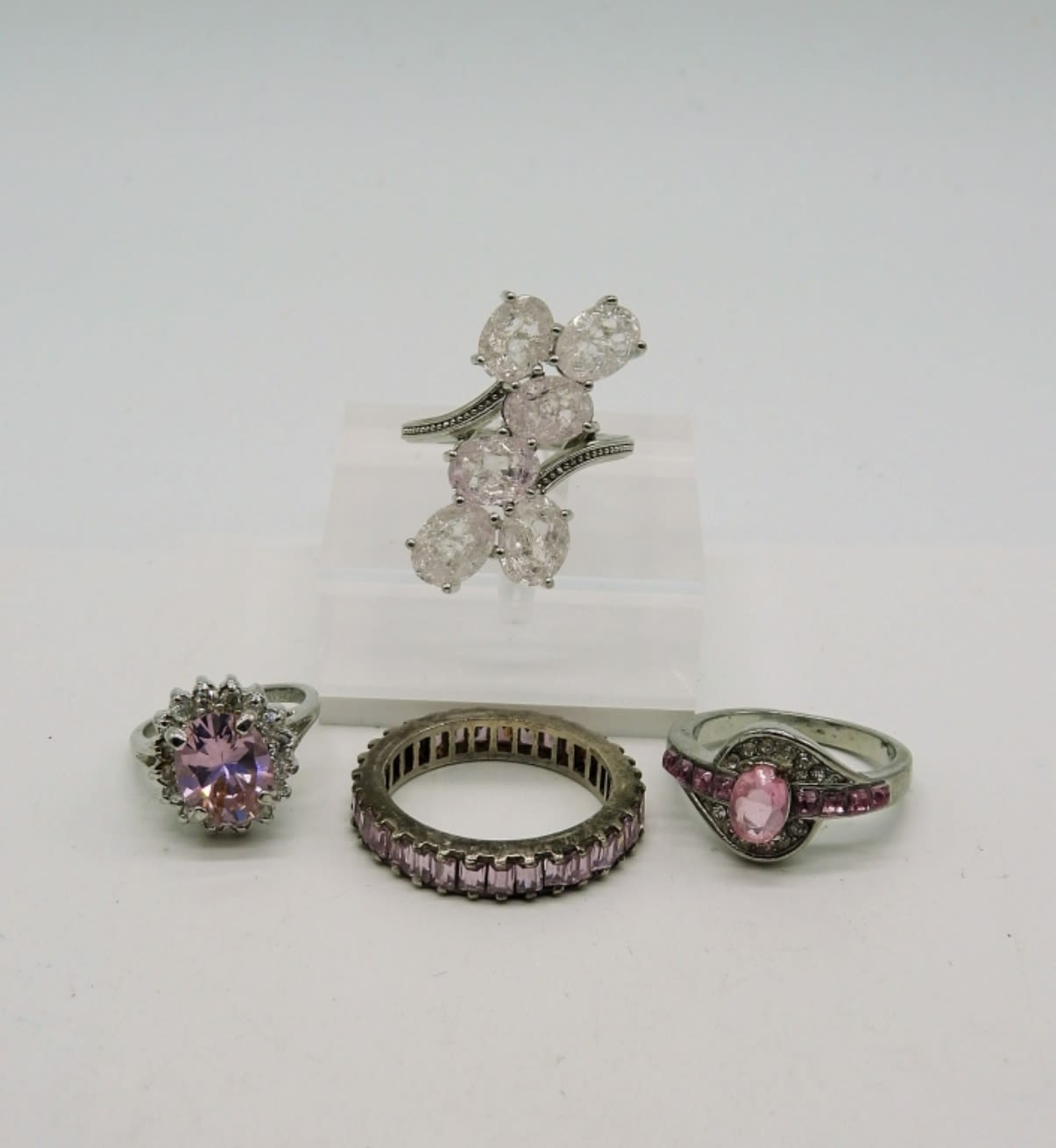 Four Sterling Rings with Pink Gemstones, sizes 4-10 12.4 DWT