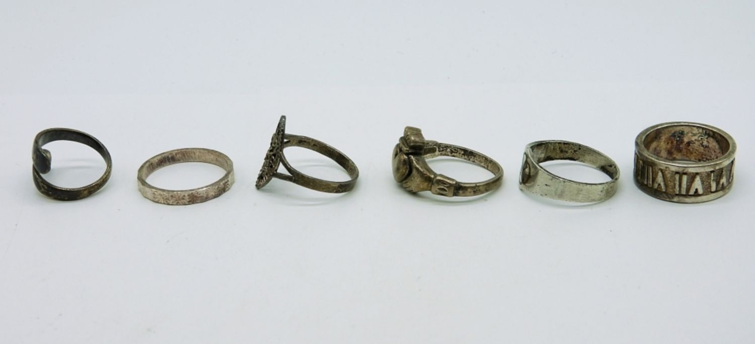 Six Sterling Silver Rings and Bands, Sizes 3-8. 13.9 DWT