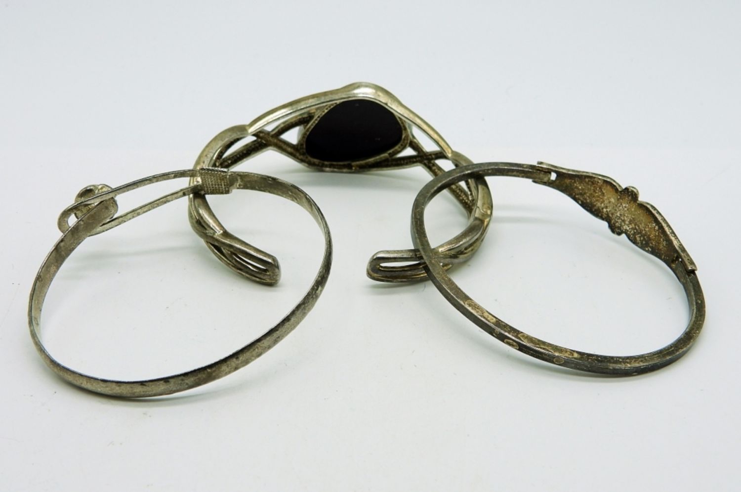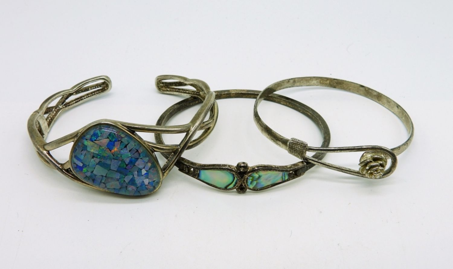 Vintage Sterling Abalone Cuff Bracelet, Vintage Sterling Rose Cuff Bracelet & Sterling Cuff with Mosaic Gemstone. 31.2 DWT