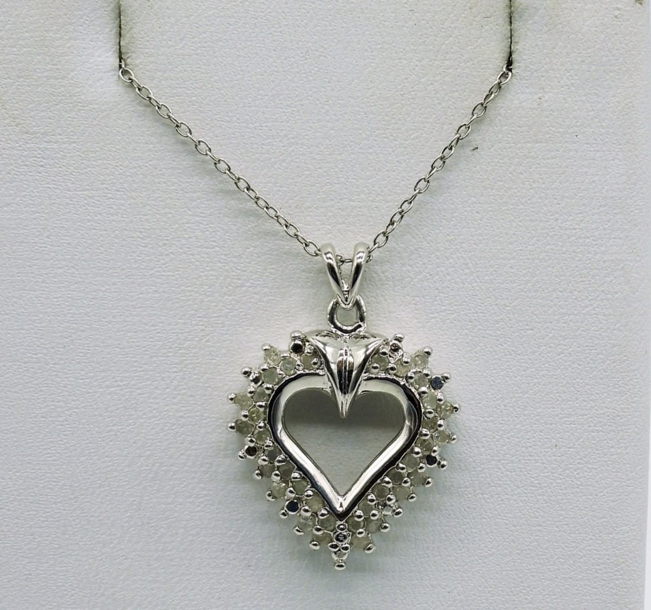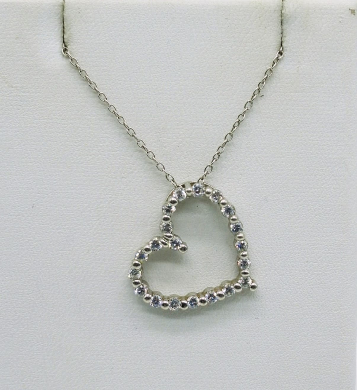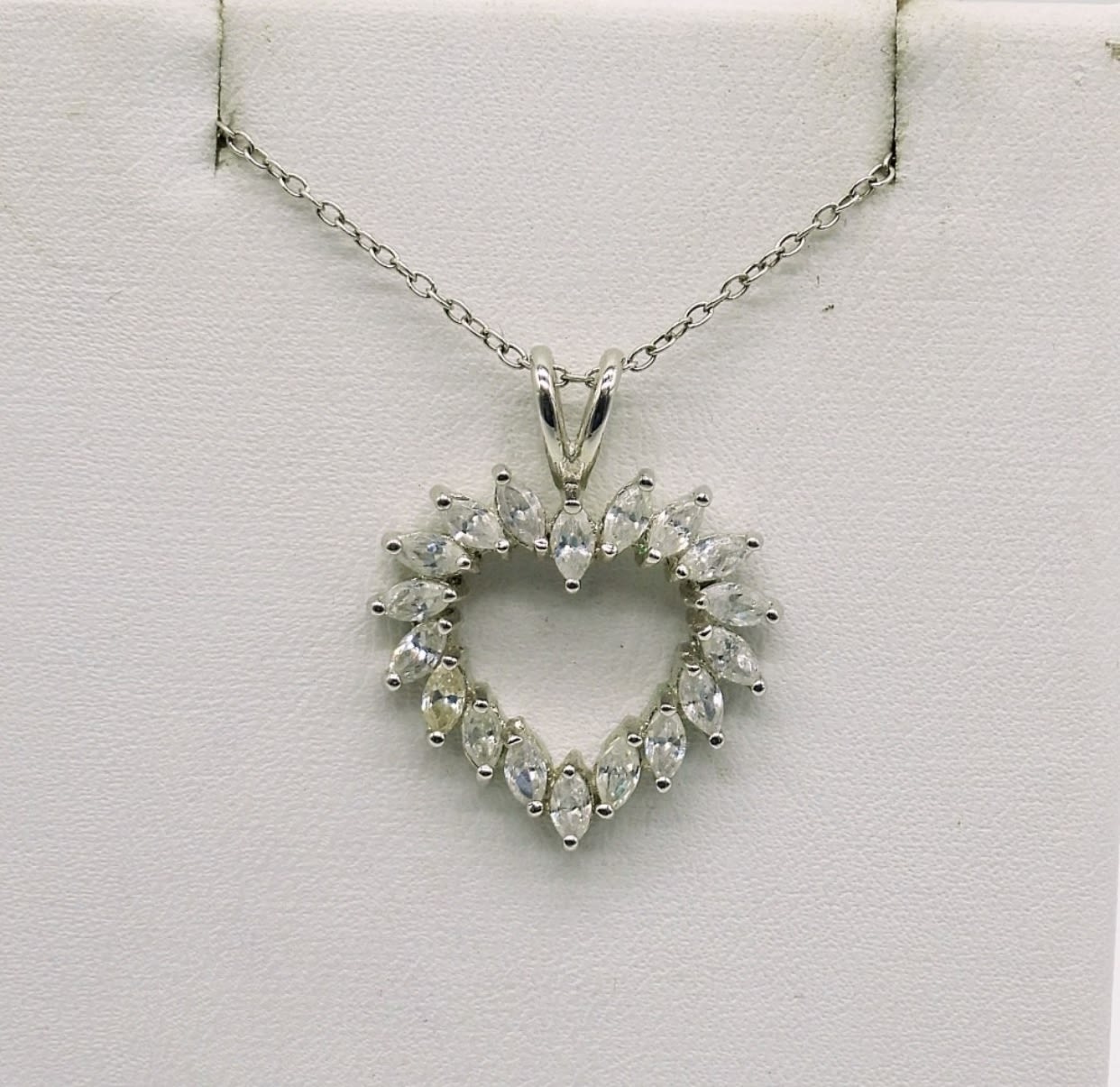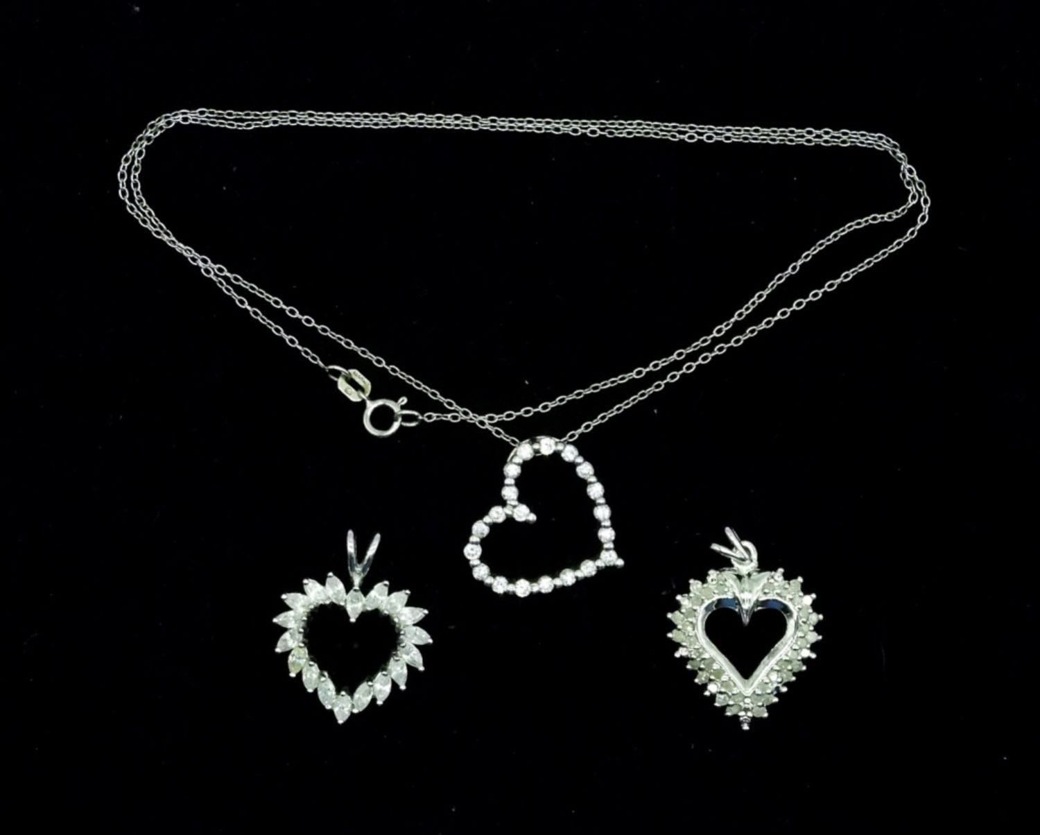 Three Sterling Silver Heart Pendants with Diamond Colored Gemstones and a Sterling 18 inch chain. 6.1 DWT