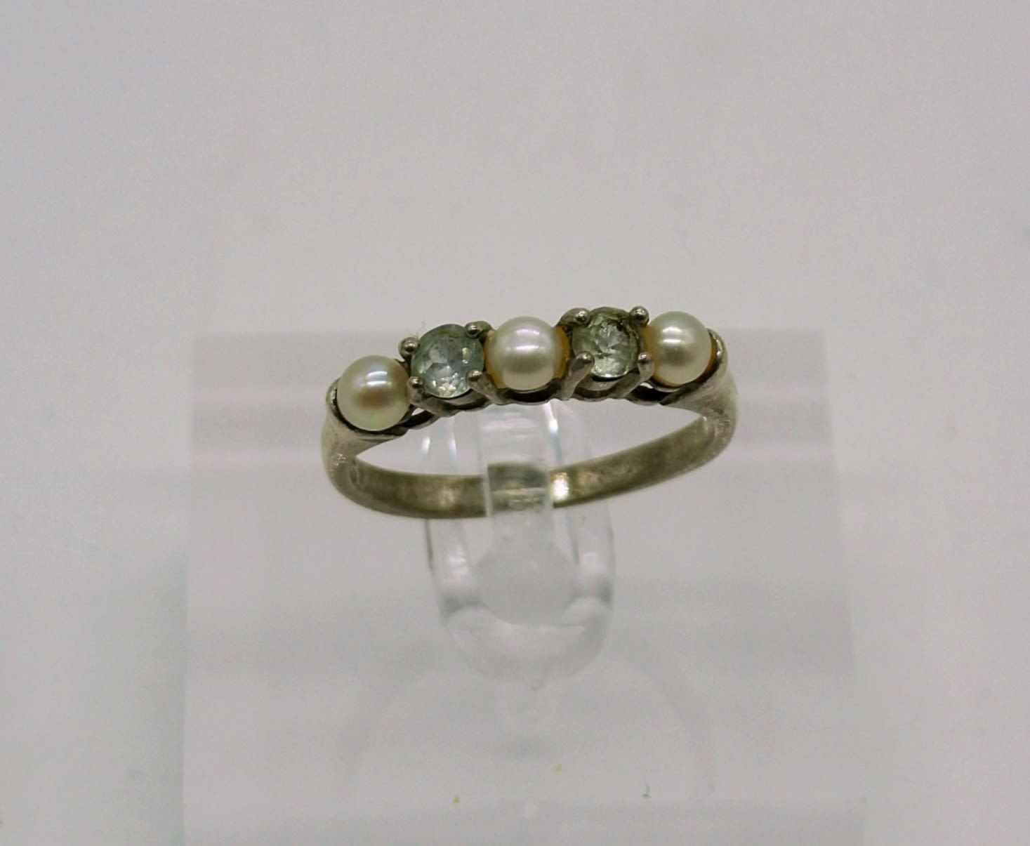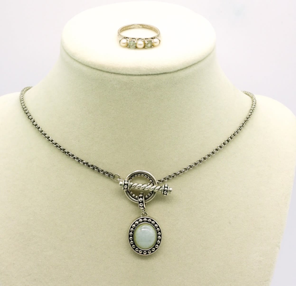 Sterling Pearl & White Gemstone Ring, Size 8 . Sterling Toggle Clasp 16 inch Necklace with Milky White Gemstone. 12DWT