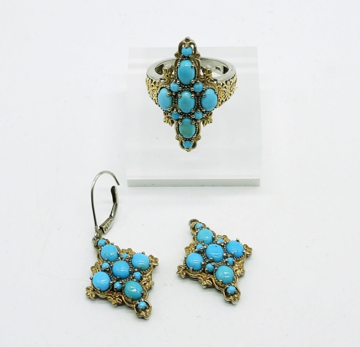 Arizona Sleeping Beauty Turquoise Ring Size 8(Platinum & 14K YG Over Sterling) with Matching Earrings! NOTE: One Earring Is Missing The Earring Hook. 8.6DWT