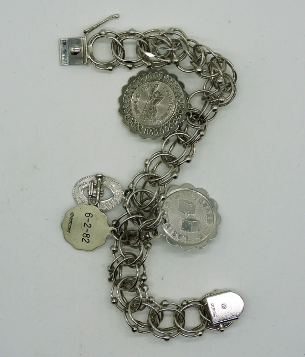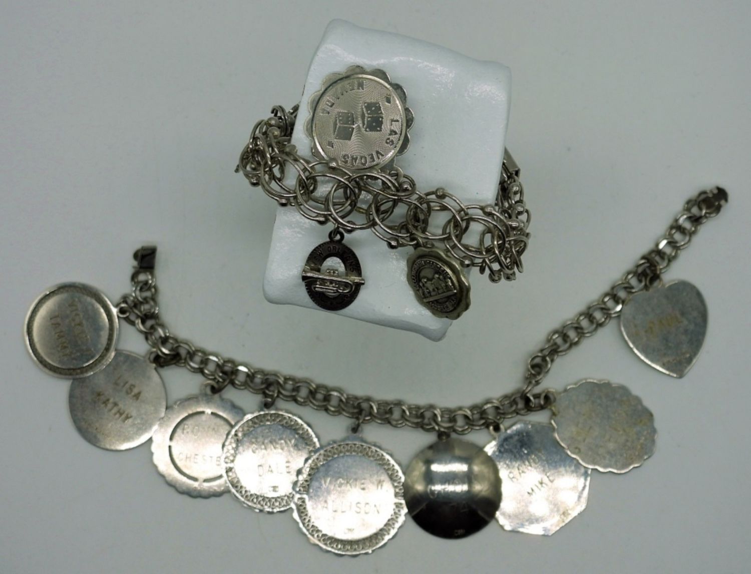 Two Sterling Silver Charm Bracelets, 7 inches, with Personalized Charms. 47.4DWT