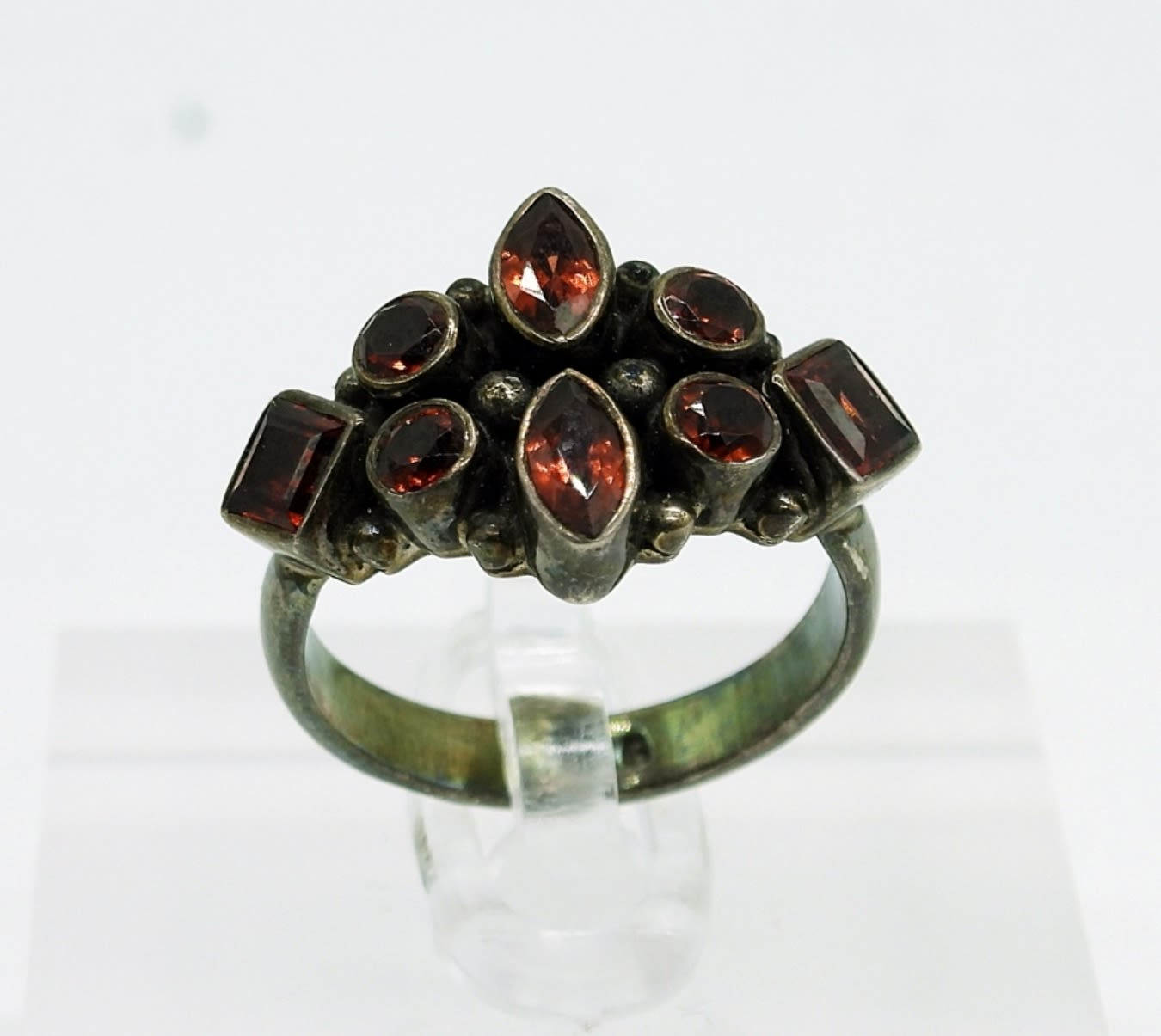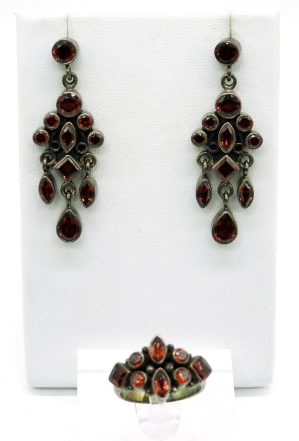 Sterling Set in a Bronze Tone with Garnet Colored Gemstones. Ring is size 6.5. 9.7DWT