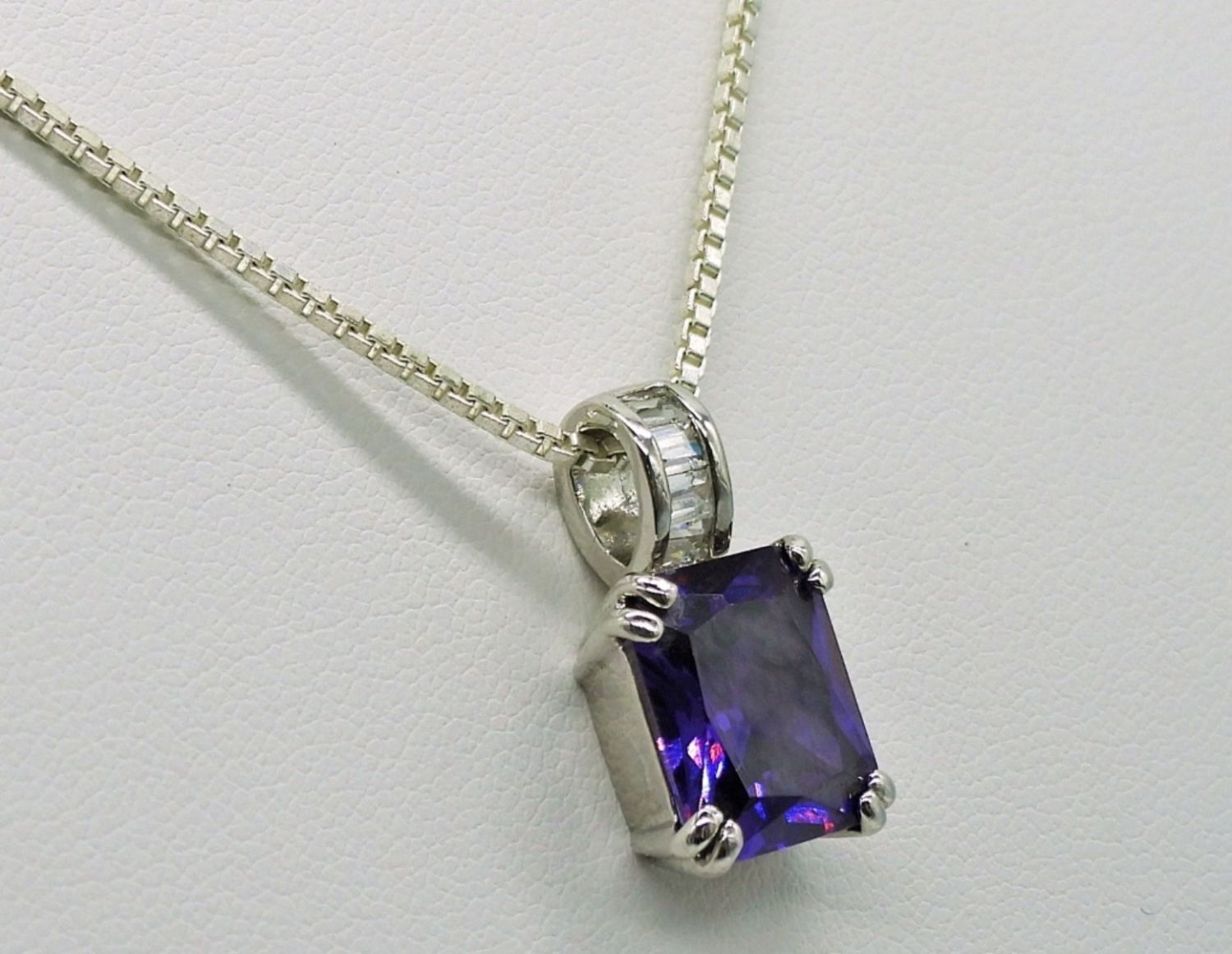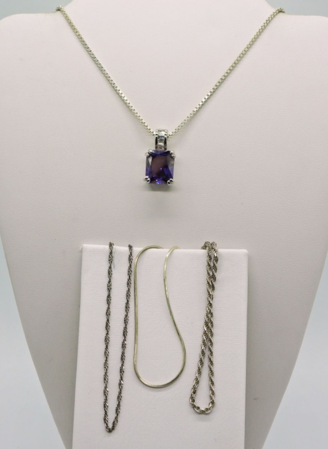 Amethyst & Diamond Colored Gemstone Necklace 22 inches. Three Sterling 10 inch Bracelets. 10.7DWT