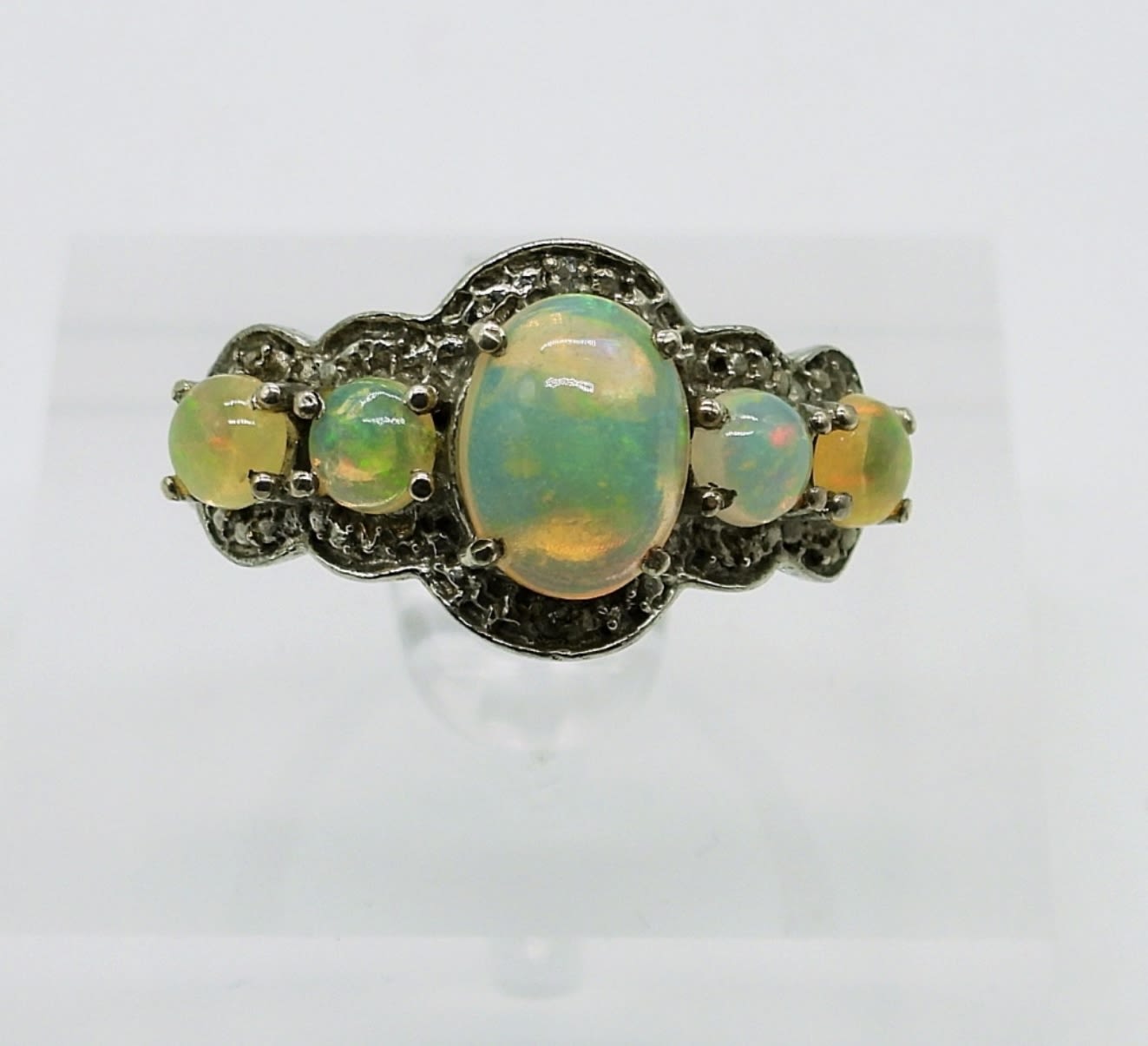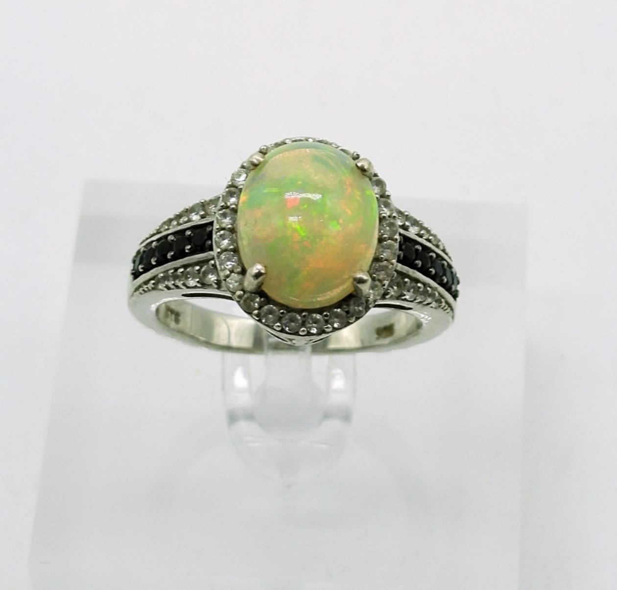 Two Sterling Silver Rings with White Opal Triplet Gemstones (Size 8) and One Pair of Pink Opal Triplet Gemstone Earrings. 10DWT