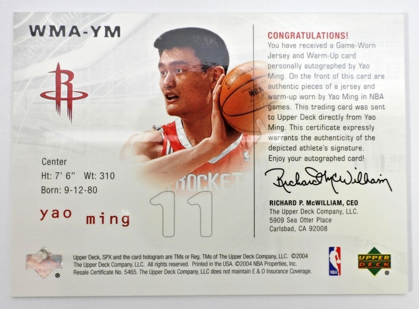 2004, SPX, NBA, UPPER DECK #076/103 HAS GAME-WORN JERSEY