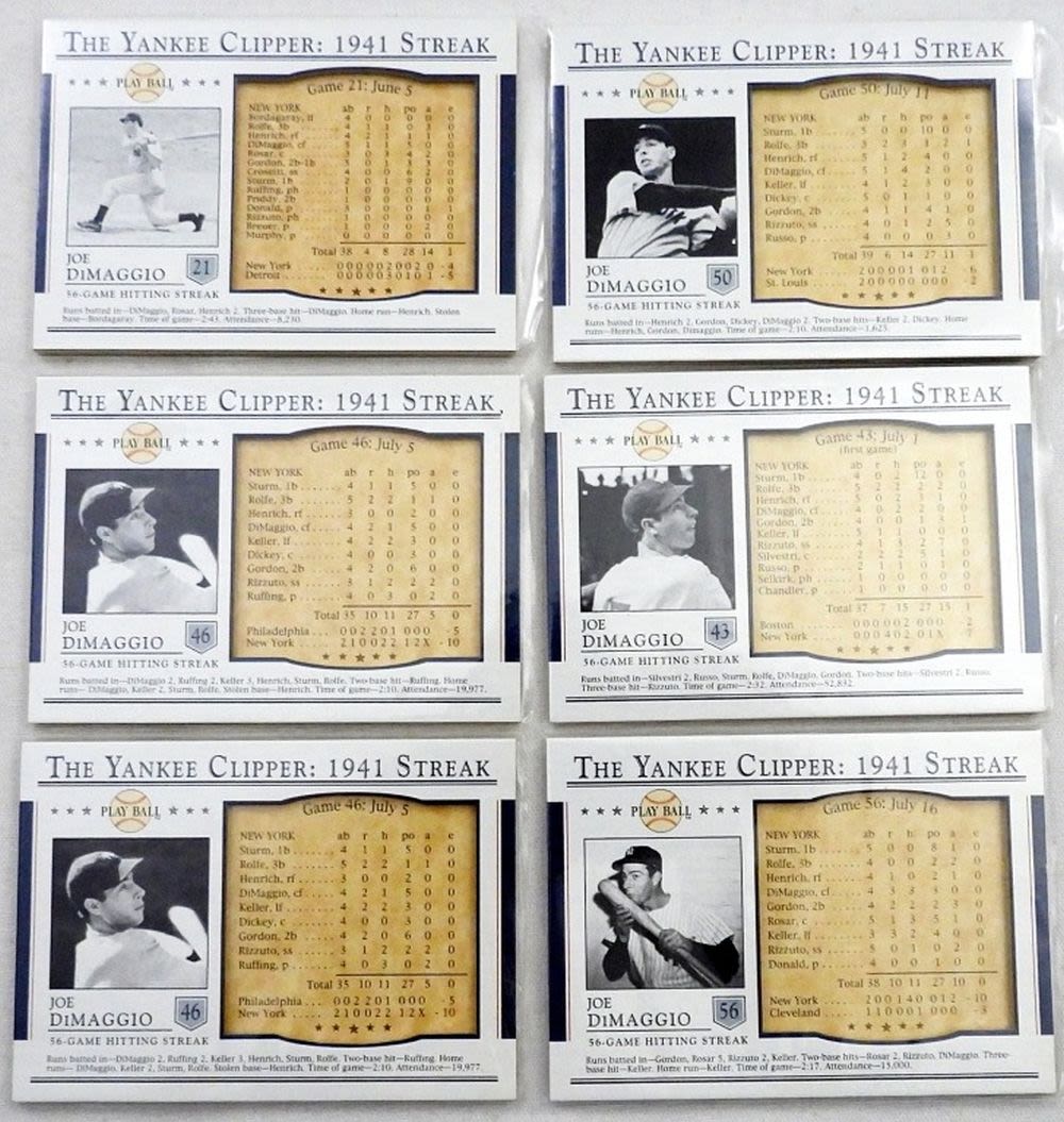 (6) THE YANKEE CLIPPER: 1941 STREAK – ALL DIFFERENT – ALL VERY NICE CONDITION