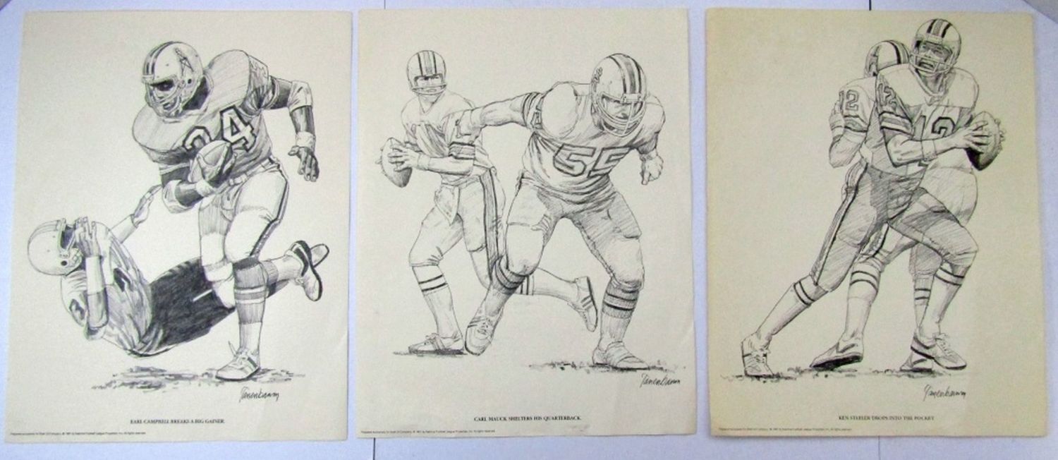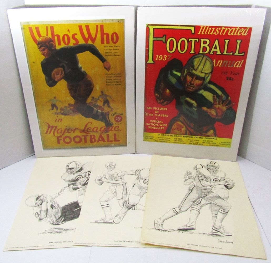 (3) 1981 Shell Oil Company NFL Lithographs – Ken Stabler Drops Into The Pocket, Carl Mauck Shelters His Quarterback, Earl Campbell Breaks A Big Gainer; Who’s Who in Major League Football Official N.S.E. Poster, Illustrated Football 1937 Annual 8th Year Coast-to-Coast Preview of 1937 Football; Excellent/Great Conditions.