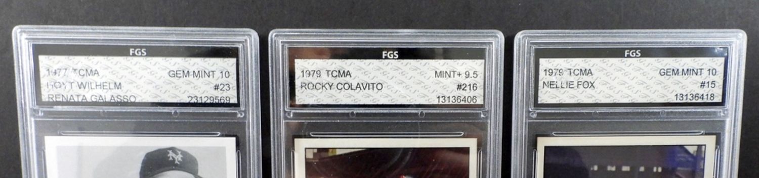 1- 1979 TCMA NELLIE FOX GEM MINT 10 #15, 1- 1977 TCMA HOYT WILHELM GEM MINT 10 #23, 1-1979 TCMA ROCKY COLAVITO MINT+9.5 #216