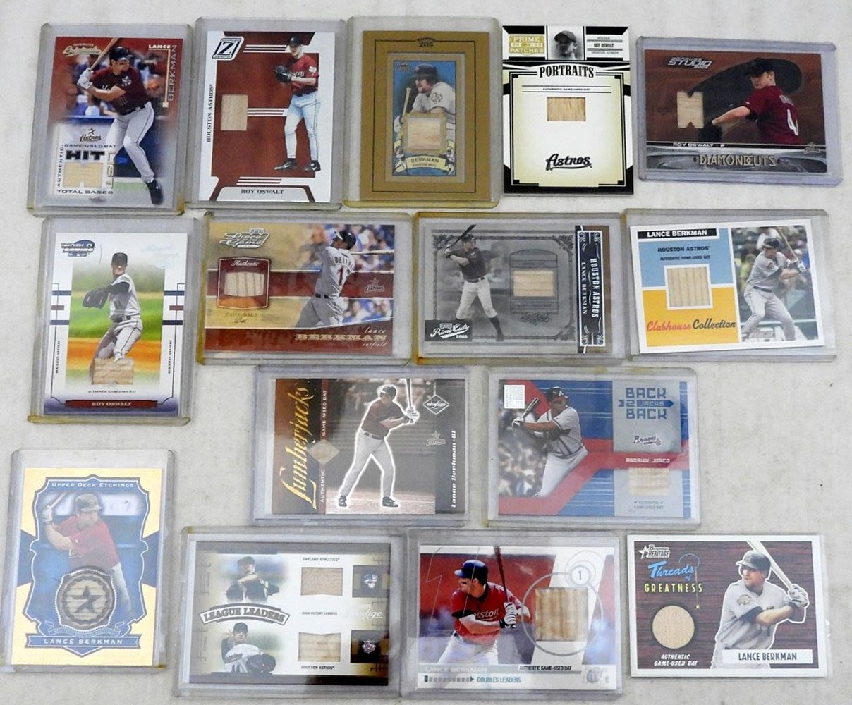 BASEBALL CARDS WITH BAT PATCH – INCLUDES ROY OSWALT, ANDRUW JONES & LANCE BERKMAN