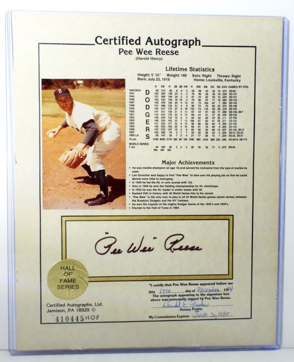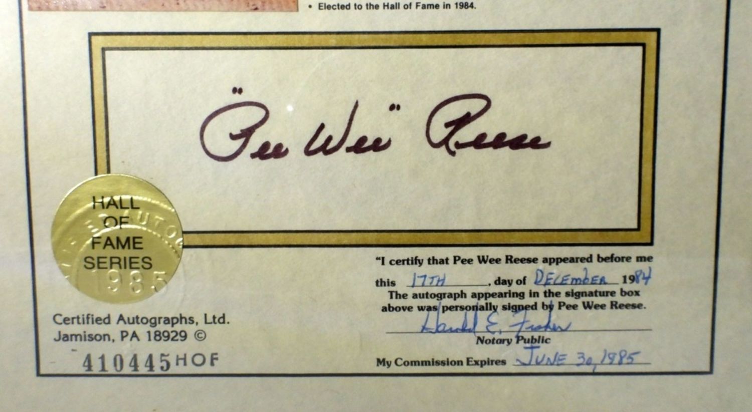 HALL OF FAME SERIES, WAS SIGNED AND NOTARIZED ON DECEMBER 17TH 1984
