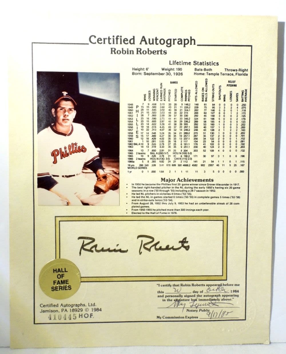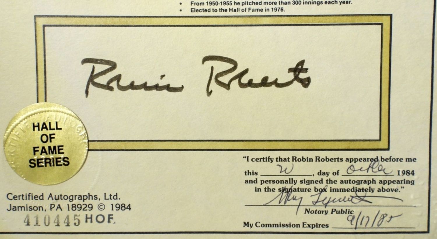 HALL OF FAME SERIES, SIGNED AND NOTARIZED ON OCTOBER 20TH 1984