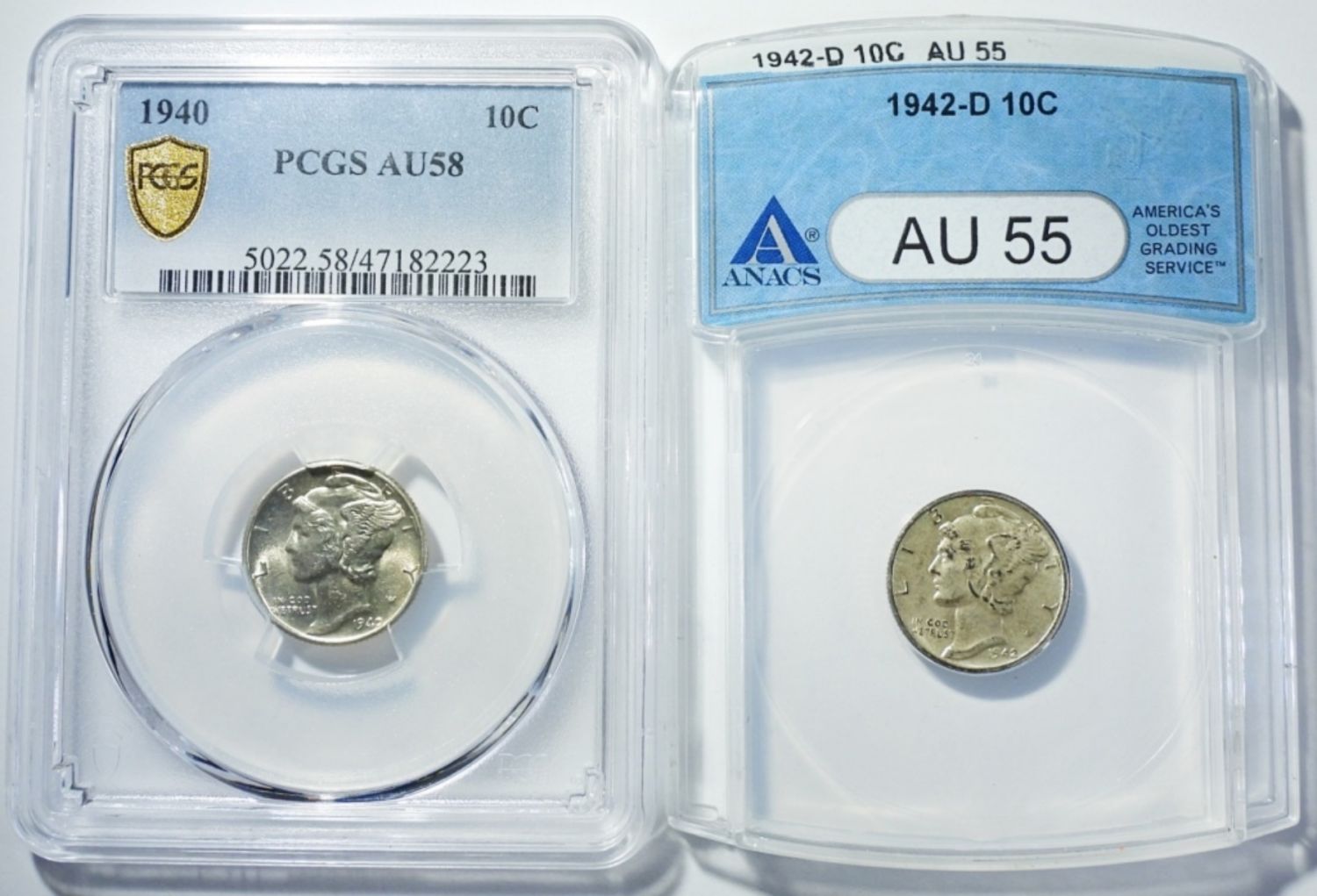 1940 PCGS AU-58 & 1942-D ANACS AU-55