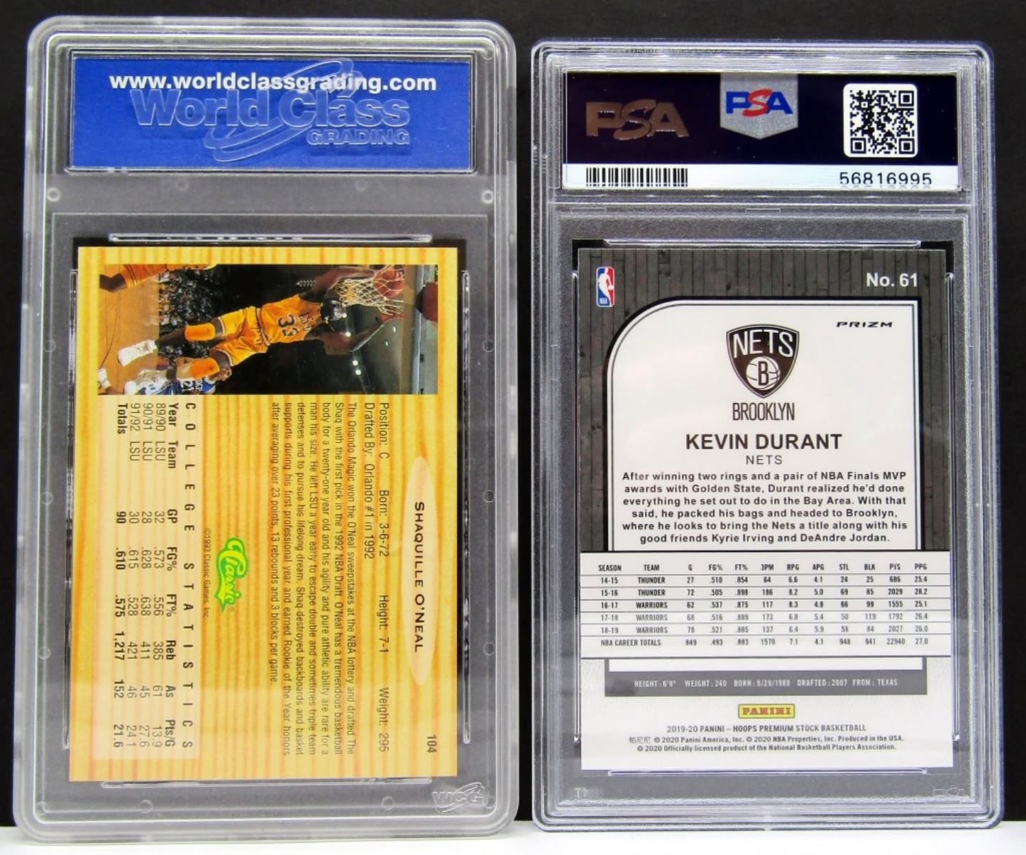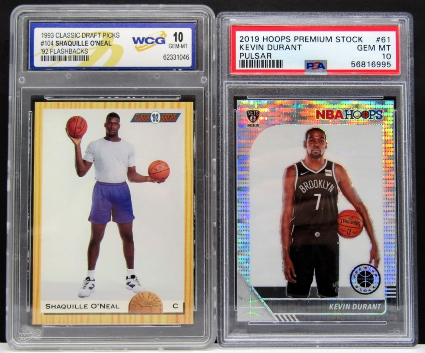 1993 Classic Draft Picks #104 Shaquille O’Neal ’92 Flashbacks; 2019 Hoops Premium Stock Kevin Durant Pulsar.