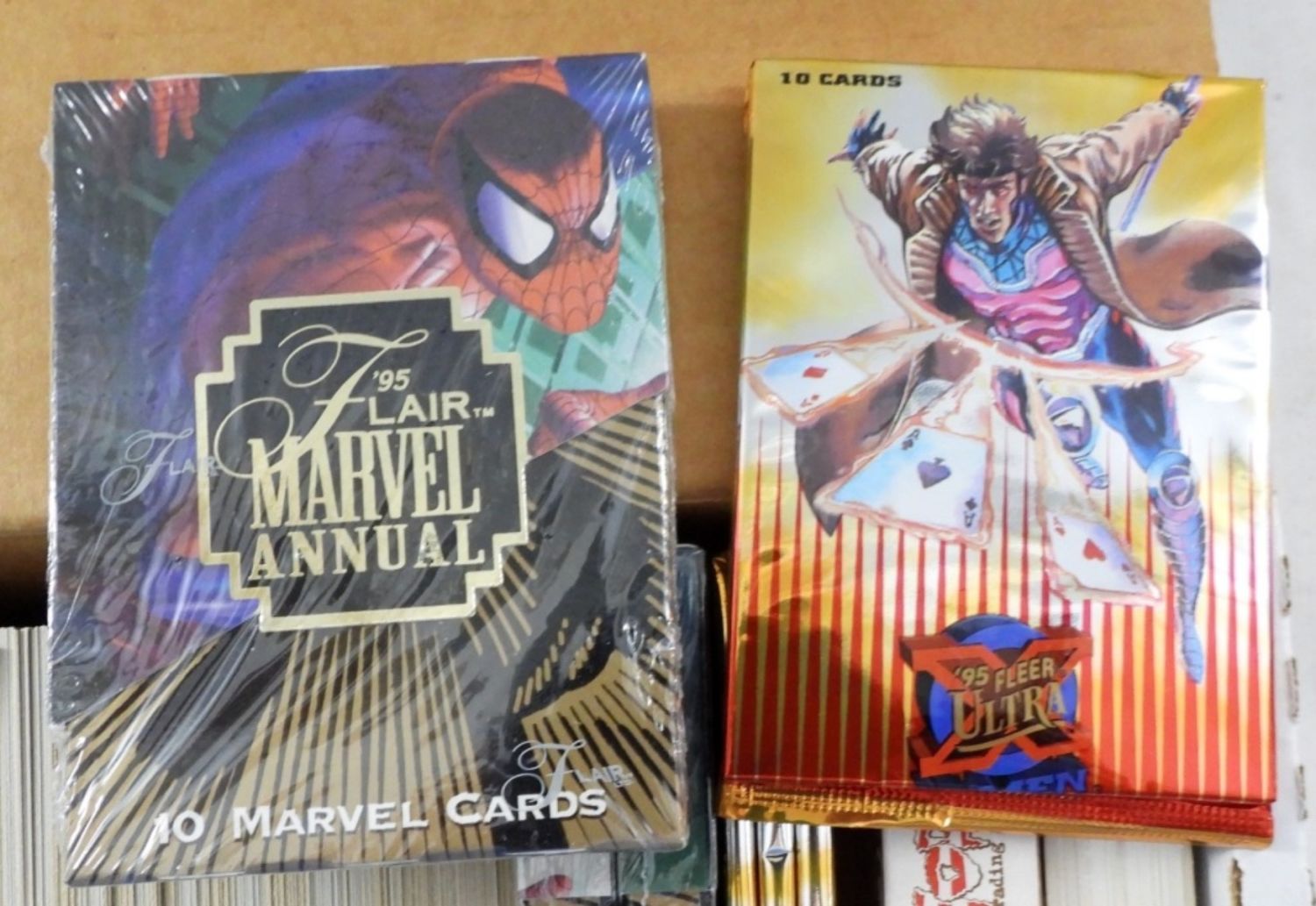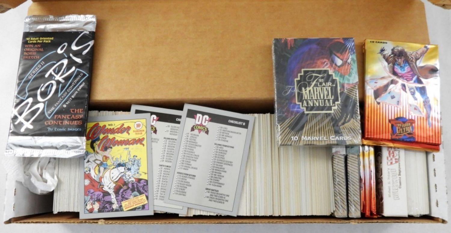(4) SEALED PACKS MARVEL & (1) BORIS with APPROX 500 VALIANT MARVEL/DC CARDS – NICE CONDITION