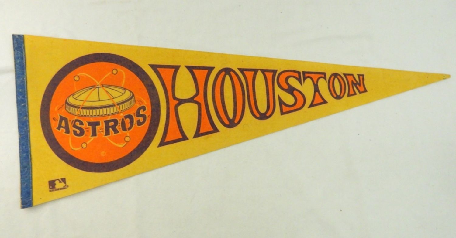30X12, DOES HAVE FADED FROM THE YEARS AND DOES HAVE PIN HOLES IN SOME SPOTS, IN A PENNANT SLEEVE