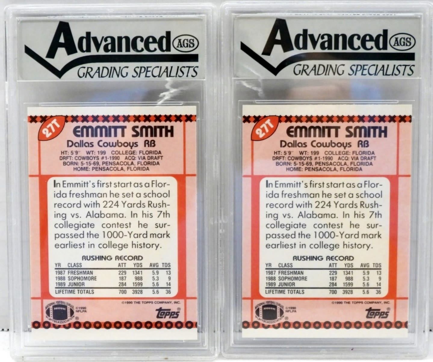 1990 EMMITT SMITH TOPPS TRADED #27T EMMITT SMITH – 9.0 MINT GRADED BY ADVANCED GRADING SPECIALISTS