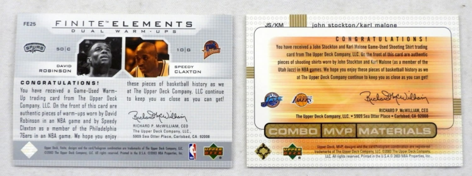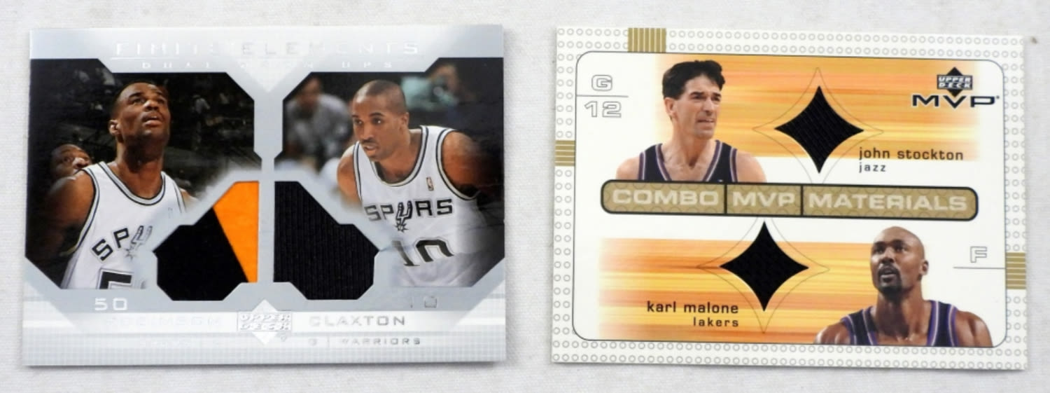 JOHN STOCKTON & KARL MALONE, DAVID ROBINSON & SPEEDY CLAXTON – GAME WORN JERSEY BASKETBALL PATCH RELIC CARDS