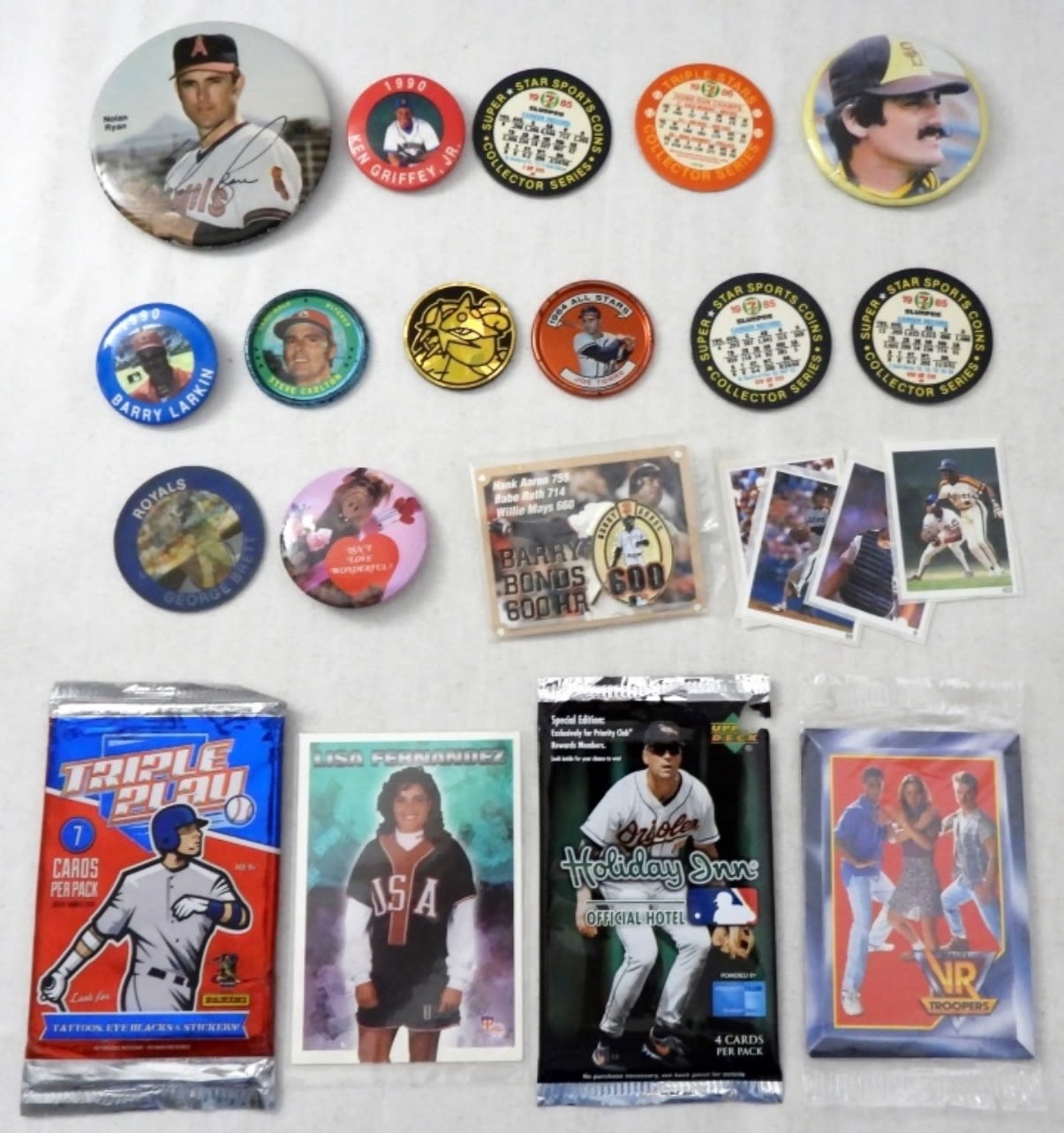 HOLIDAY INN BASEBALL PACK opened but complete, TRIPLE PLAY PACK, BONDS PIN & MORE