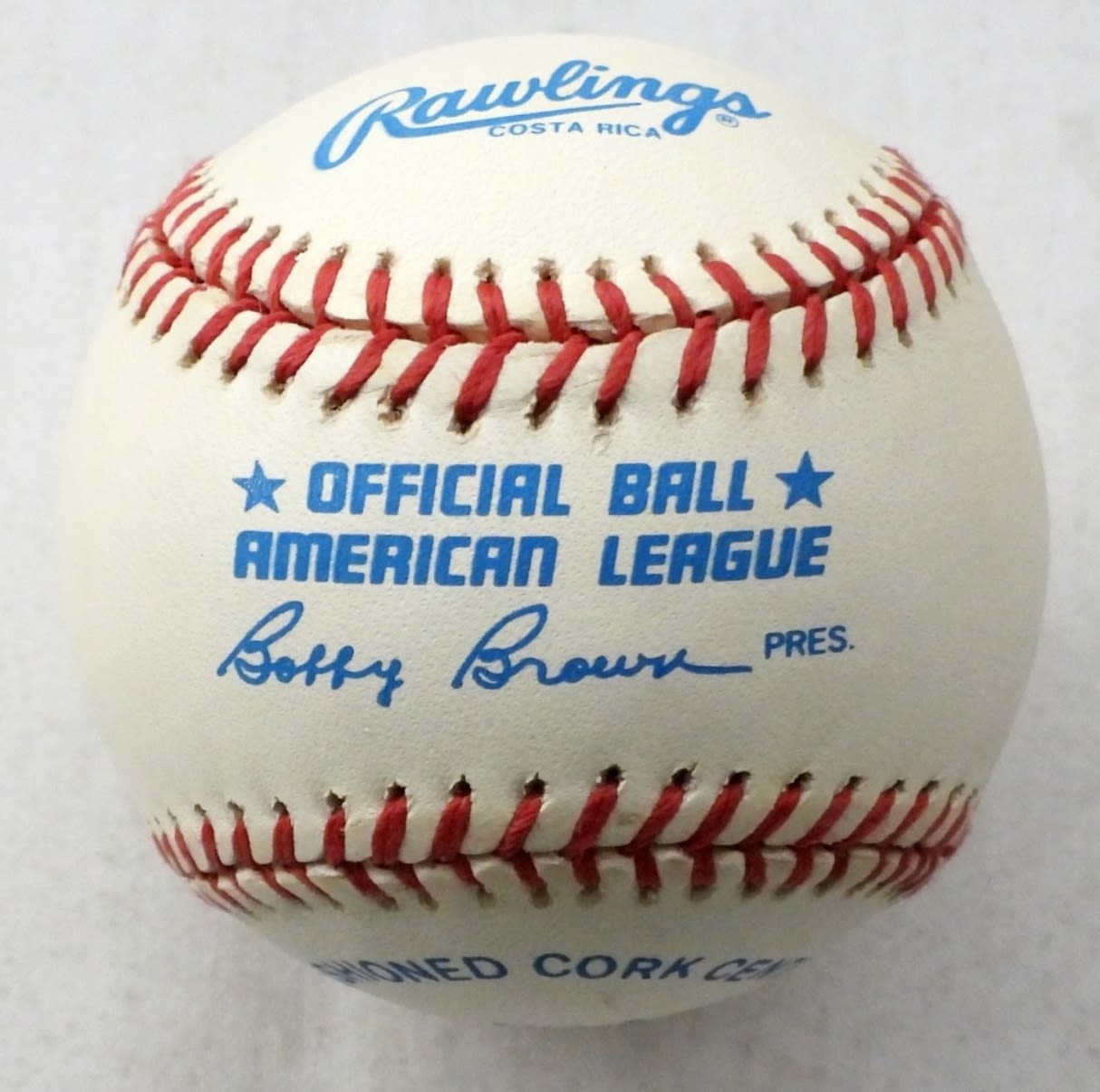 MICKEY MANTLE AUTOGRAPHED BASEBALL – OFFICIAL AMERICAN LEAGUE BASEBALL – IN PLASTIC CUBE DISPLAY – NO COA