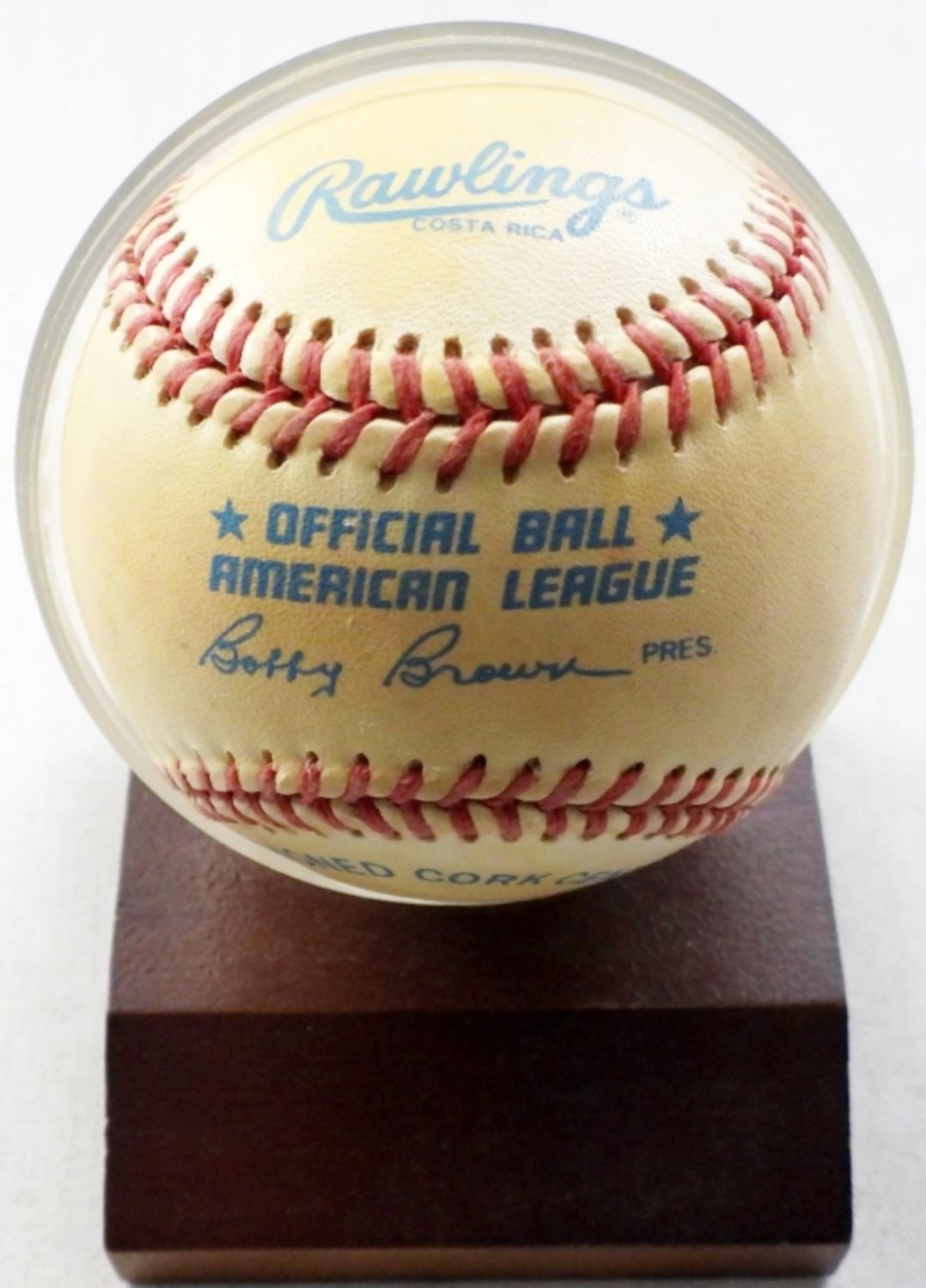 NOLAN RYAN AUTOGRAPHED BASEBALL – OFFICIAL AMERICAN LEAGUE BALL – IN DISPLAY HOLDER – NO COA