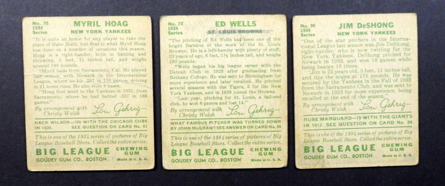 (3) 1934 GOUDEY BASEBALL CARDS