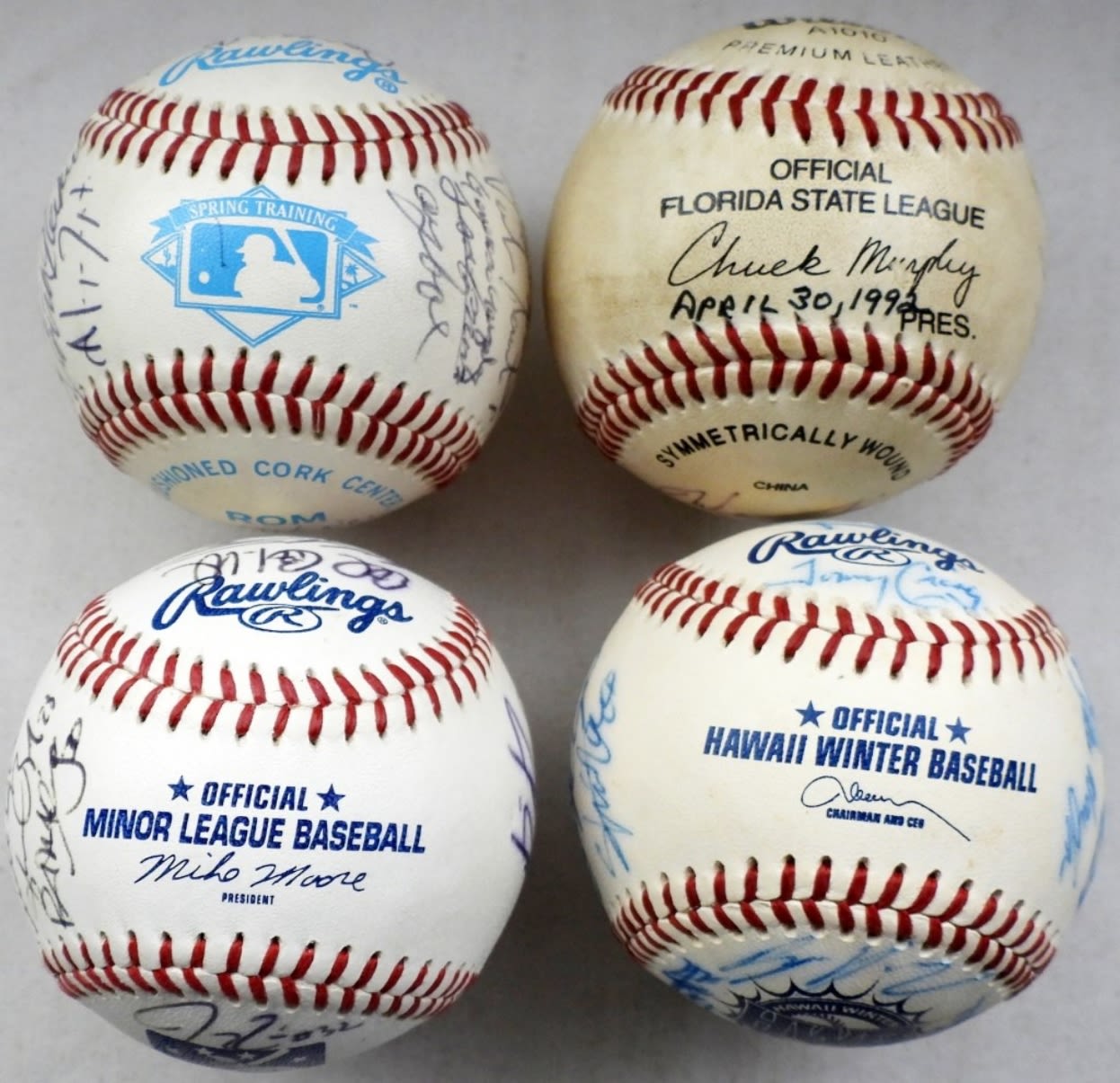 UNIDENTIFIED TEAM AUTOGRAPHED BASEBALLS – OFFICIAL MINOR LEAGUE BALL, FLORIDA STATE LEAGUE BALL, HAWAII WINTER BALL, & SPRING TRAINING BALL
