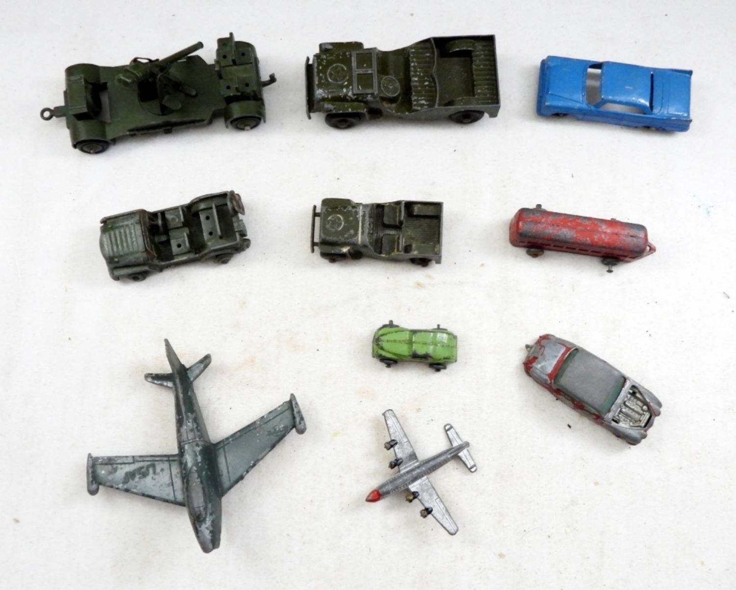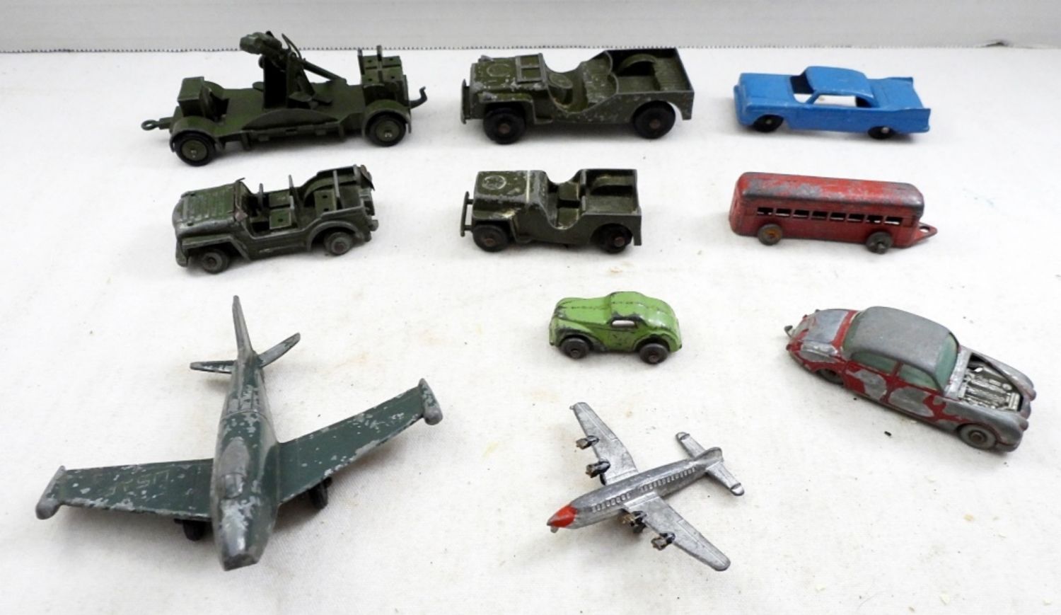 TOOTSIE TOY CARS, DINKY TOYS ARMY TRUCKS, MIDGETOY AIRPLANE, MATCHBOX CAR & MORE – NICE CONDITION