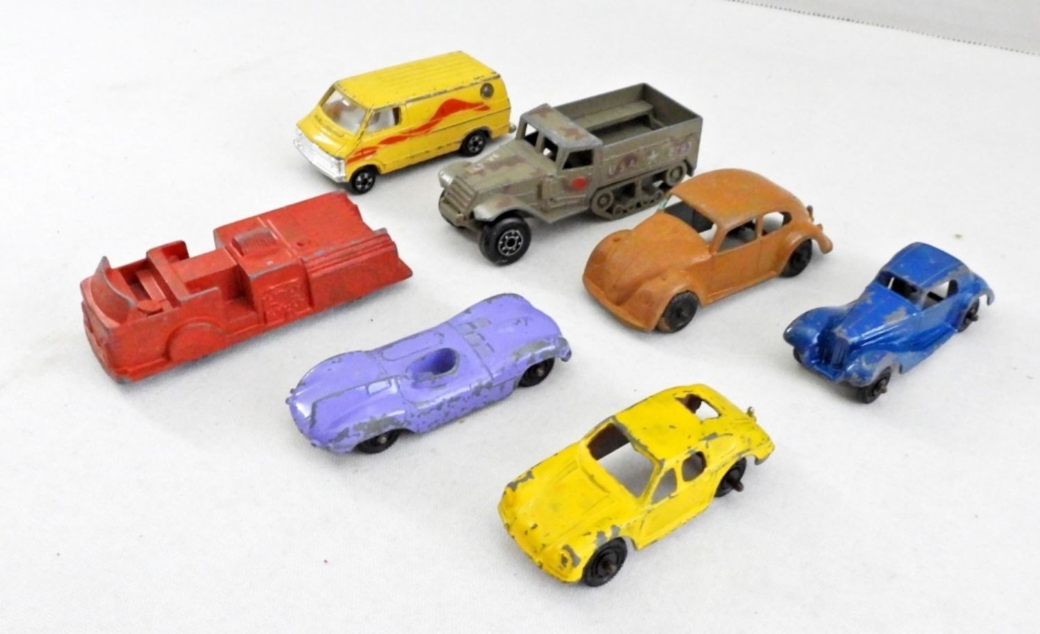 ANTIQUE (2) MIDGETOY ROCKFORD ILL. PAT. 2775847, (3) TOOTSIETOY CHICAGO USA INCLUDES MERCEDES, (2) ZYLMEX ARMORED HALF TRACK & DODGE VAN