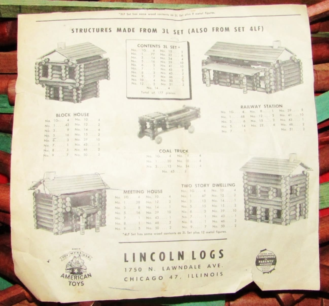 BOX FILLED WITH LINCOLN LOGS ALL DIFFERENT PARTS, ALSO HAS INDIAN AND COWBOY FIGURES