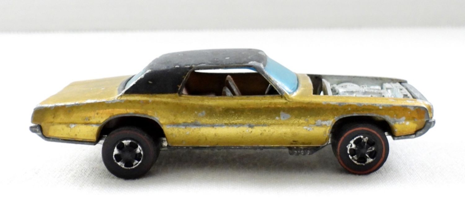 1967 MATTEL HOT WHEELS REDLINE CUSTOM T-BIRD, GOLD WITH BROWN INTERIOR, HONG KONG