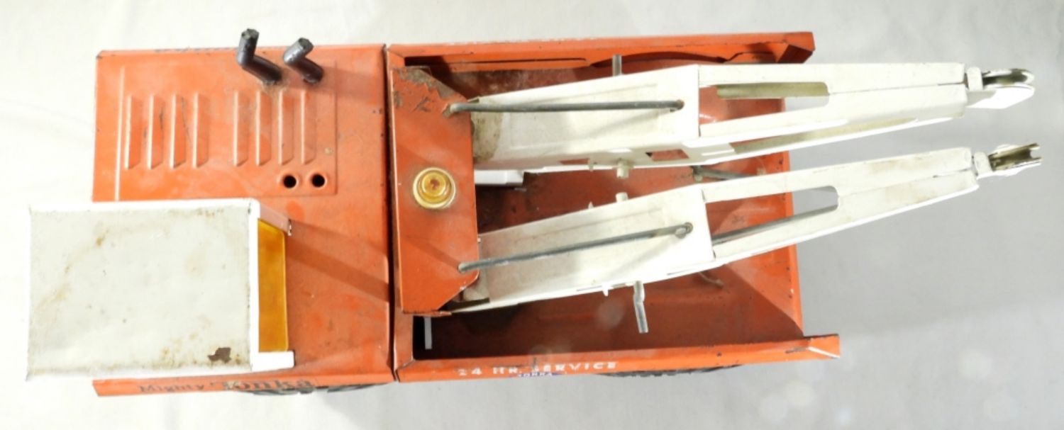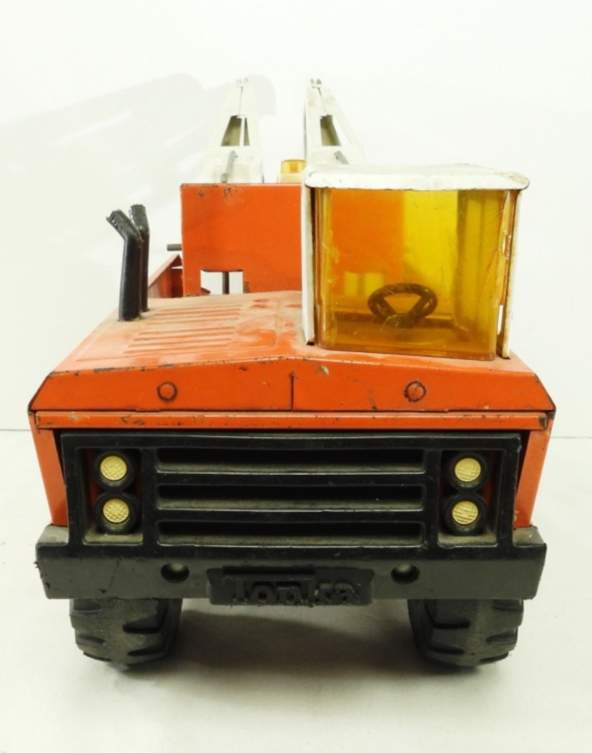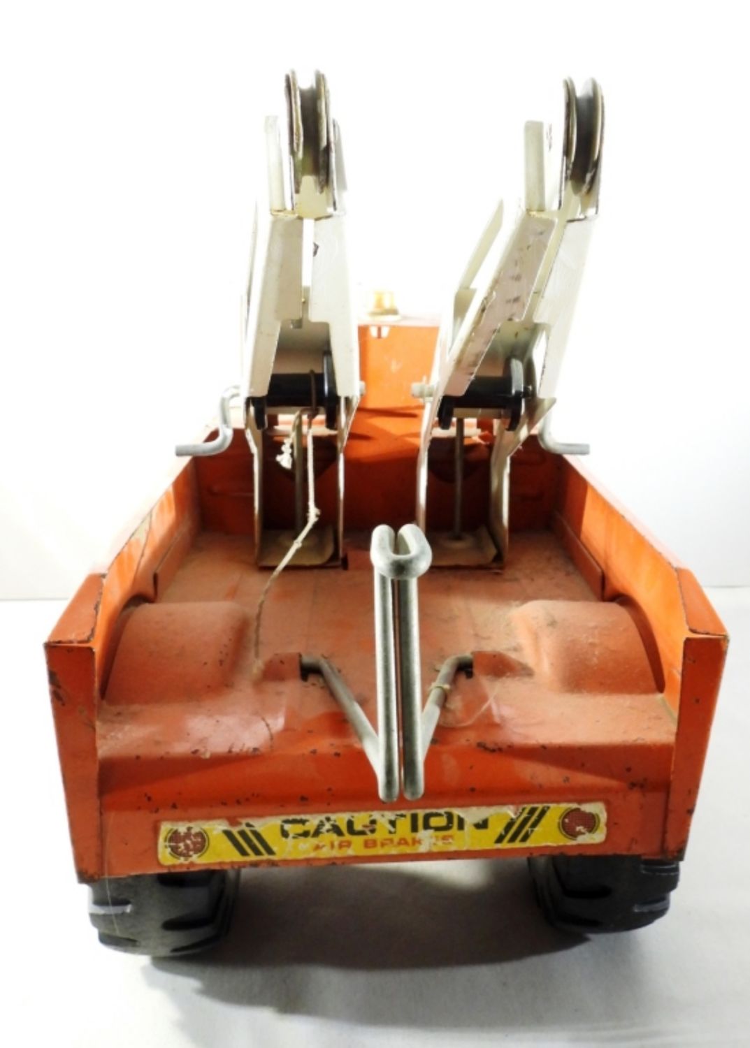 16″ LONG, NORMAL WEAR FROM THE YEARS, THE STRING FOR THE CRANS ARE NO LONG THERE