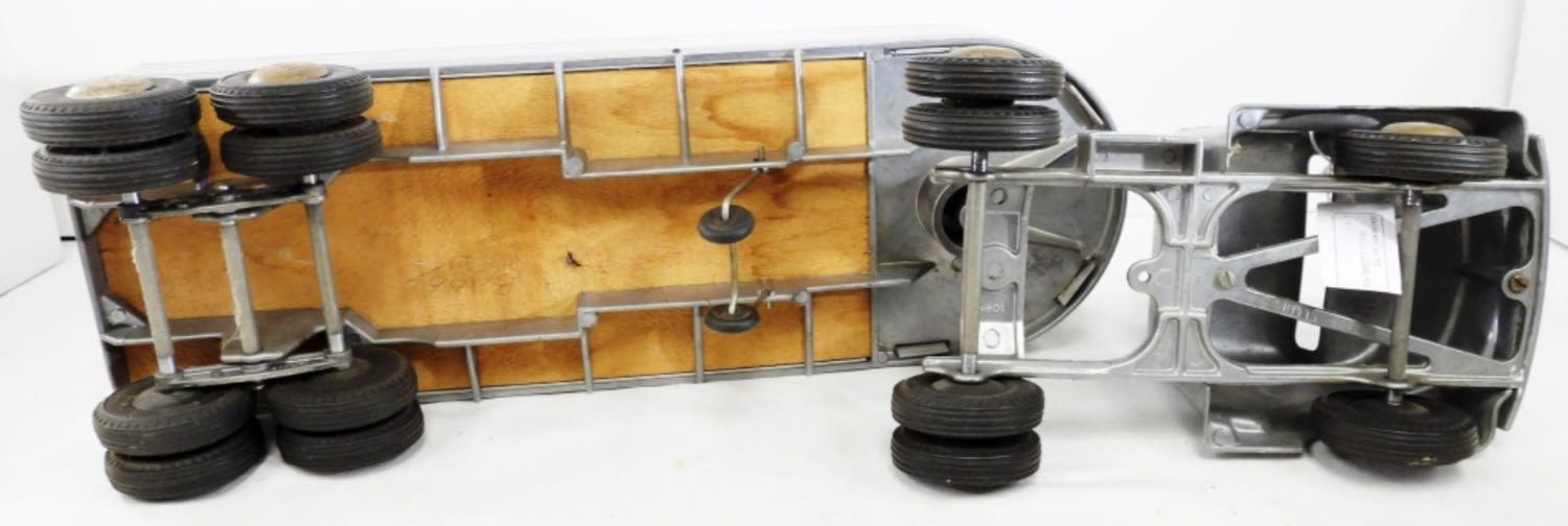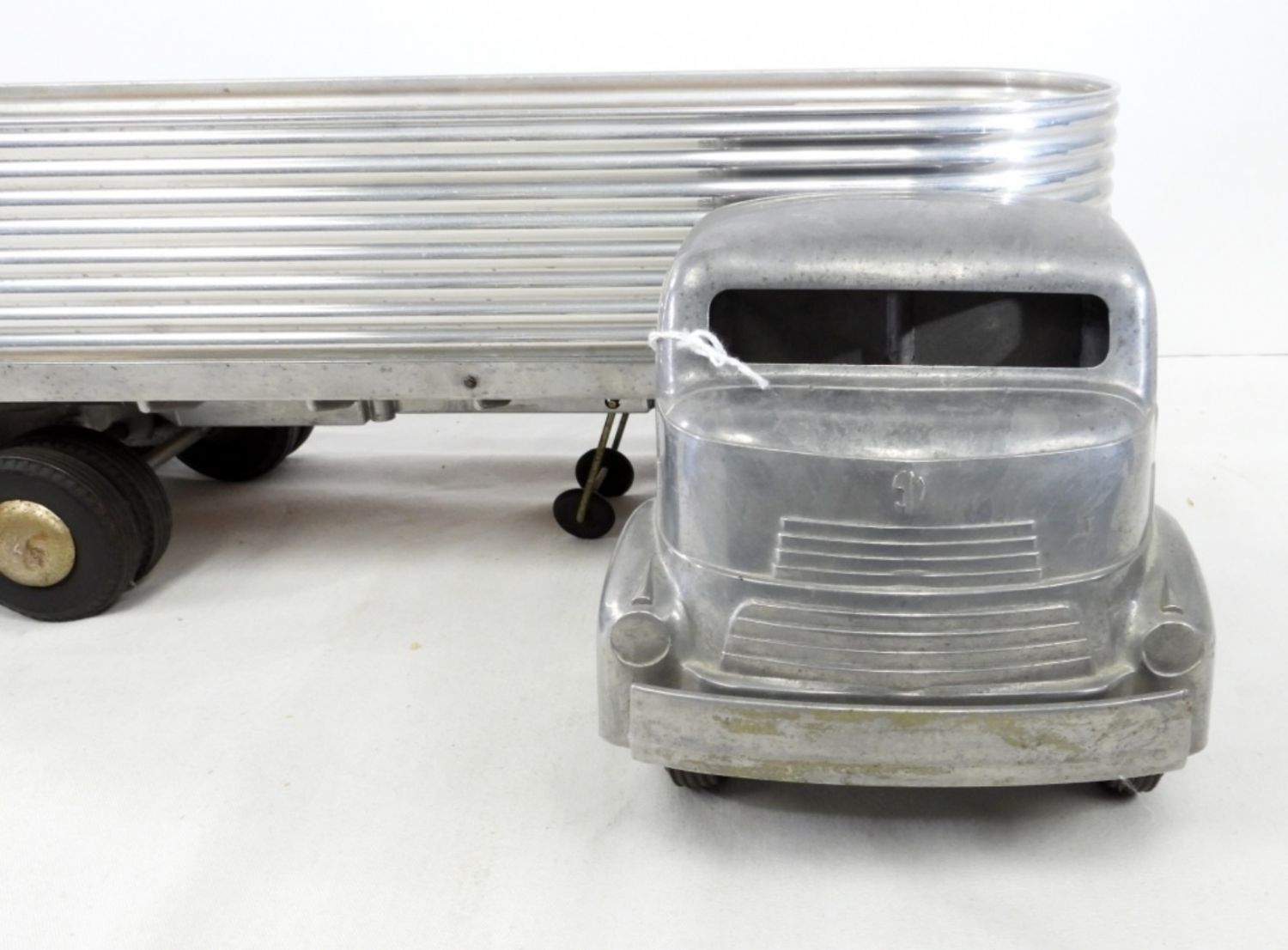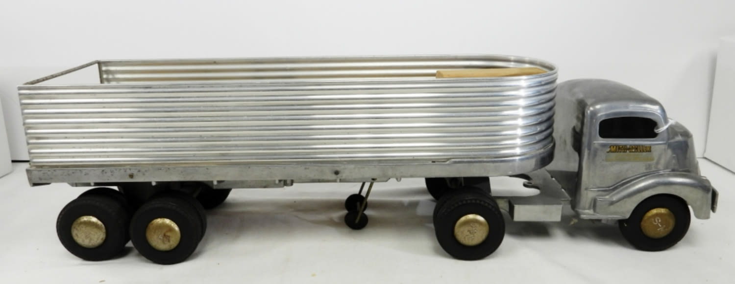 SILVER METAL GRAIN TRUCK w/TRAILER – APPROX 24″ LONG – NICE CONDITION