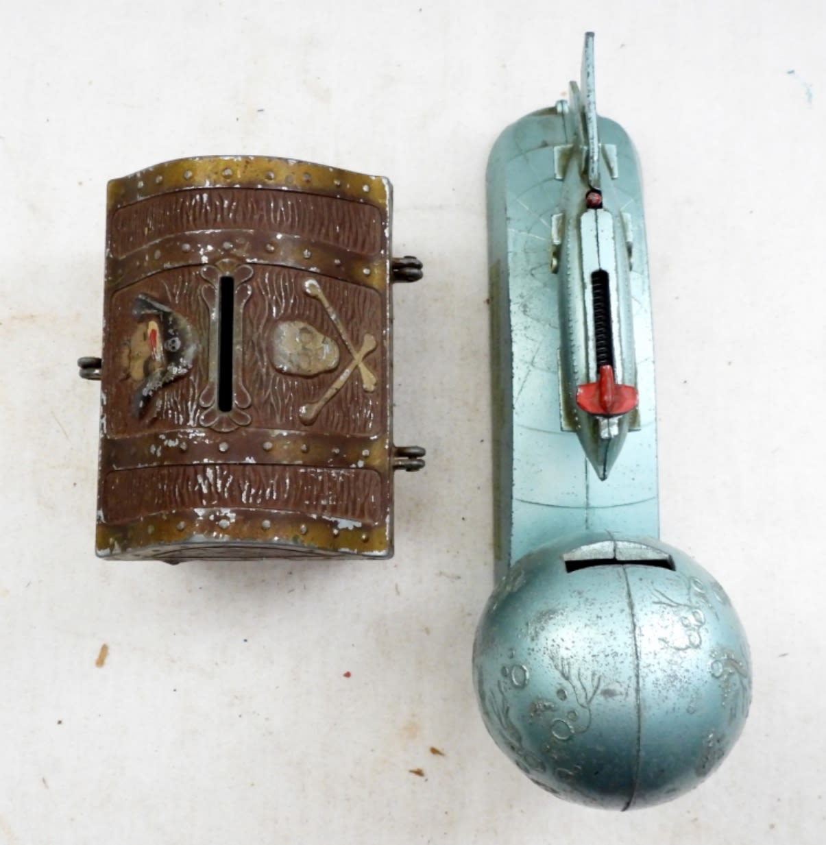E.J. Kahn Co. Chicago Pirate’s Chest & Strato Mechanical Space Rocket Ship to the Moon (The Manufacturers National Bank of Detroit, mechanism works!).