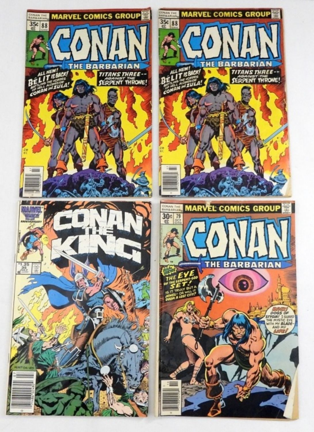 CONAN THE BARBARIAN ISSUES #65, 79, 93, 84, 87, 88, 89, 93, 175, 186 – WITH SOME DUPLICATES; ALSO INCLUDES CONAN THE KING 1985-86 RUN OF ISSUES #31-35