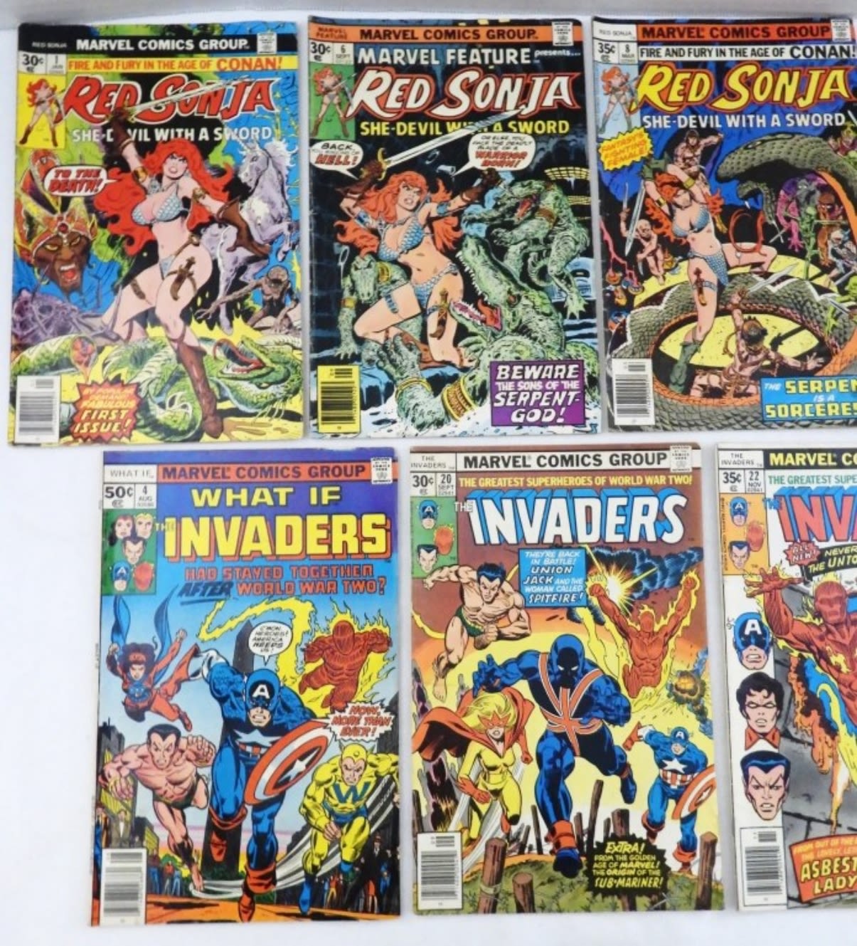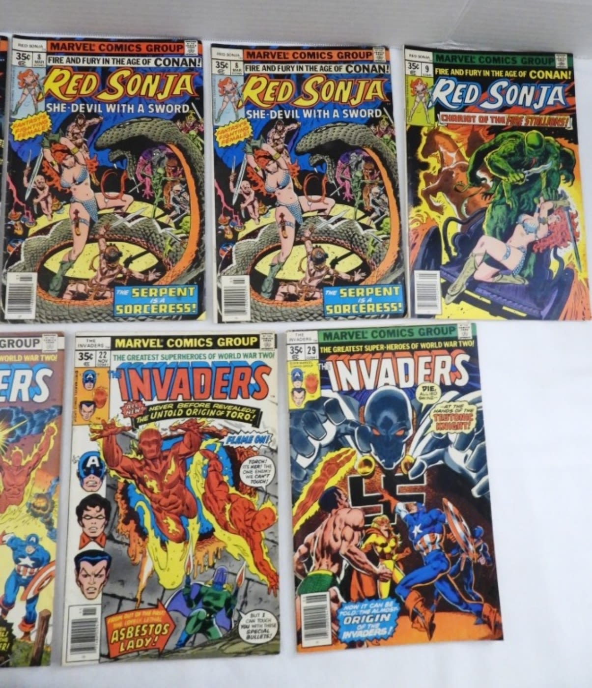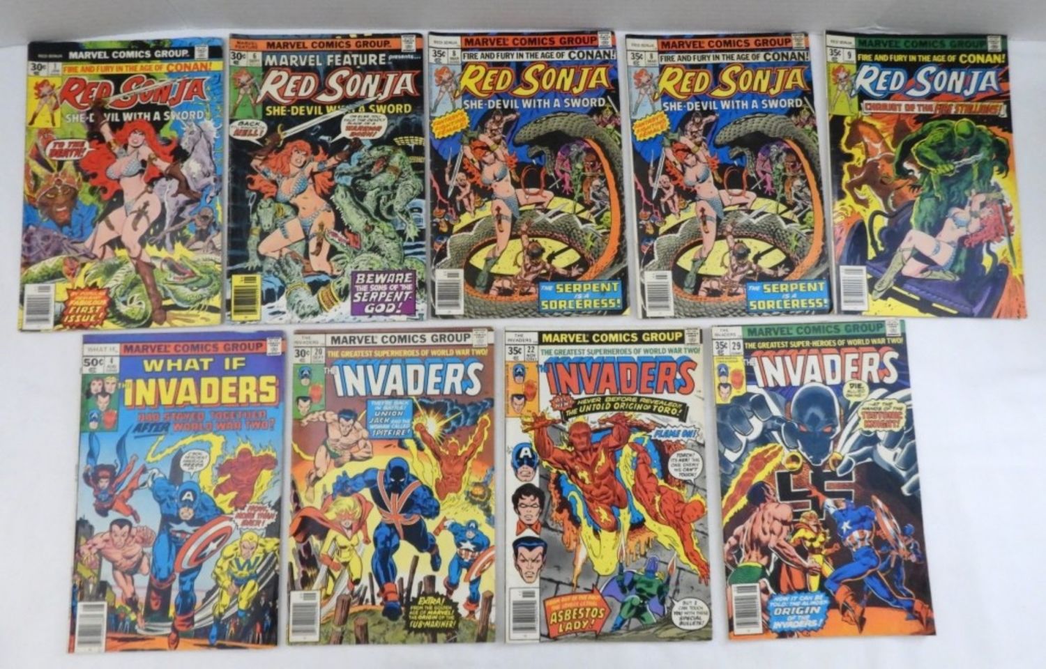 RED SONJA #1,6,(2)8,9, THE INVADERS #4,20,22,29, MOSTLY VG/GOOD